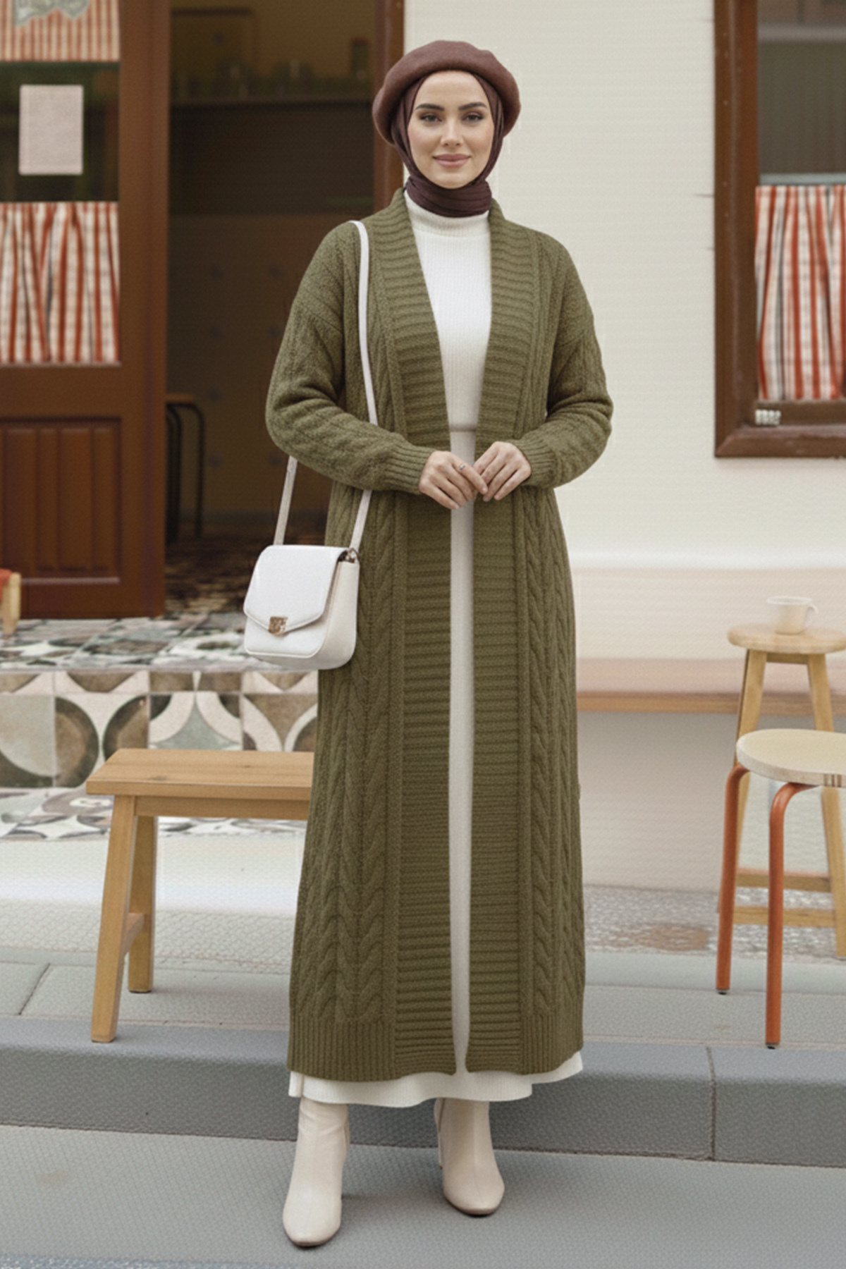 Ürün Bilgisi: Hırka Boy : 112 cm , Göğüs : 116 cm.