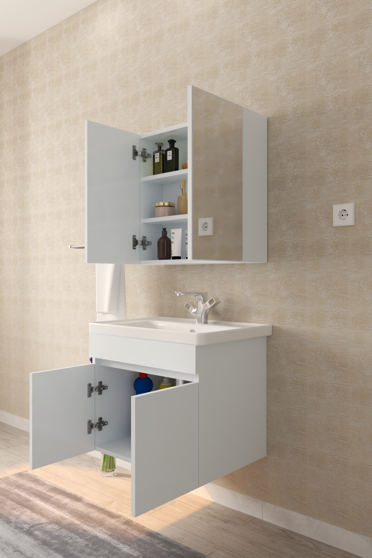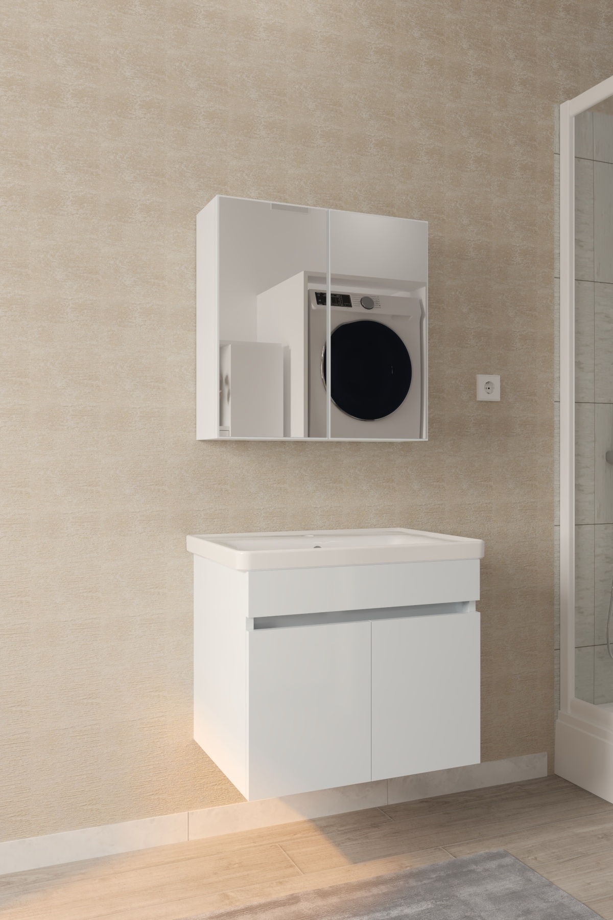 - 60 x 60 x 15 cm boyutlarındaki dolap, banyo düzeninizde ekstra alan yaratırken aynı zamanda estetik bir görünüm sunar.