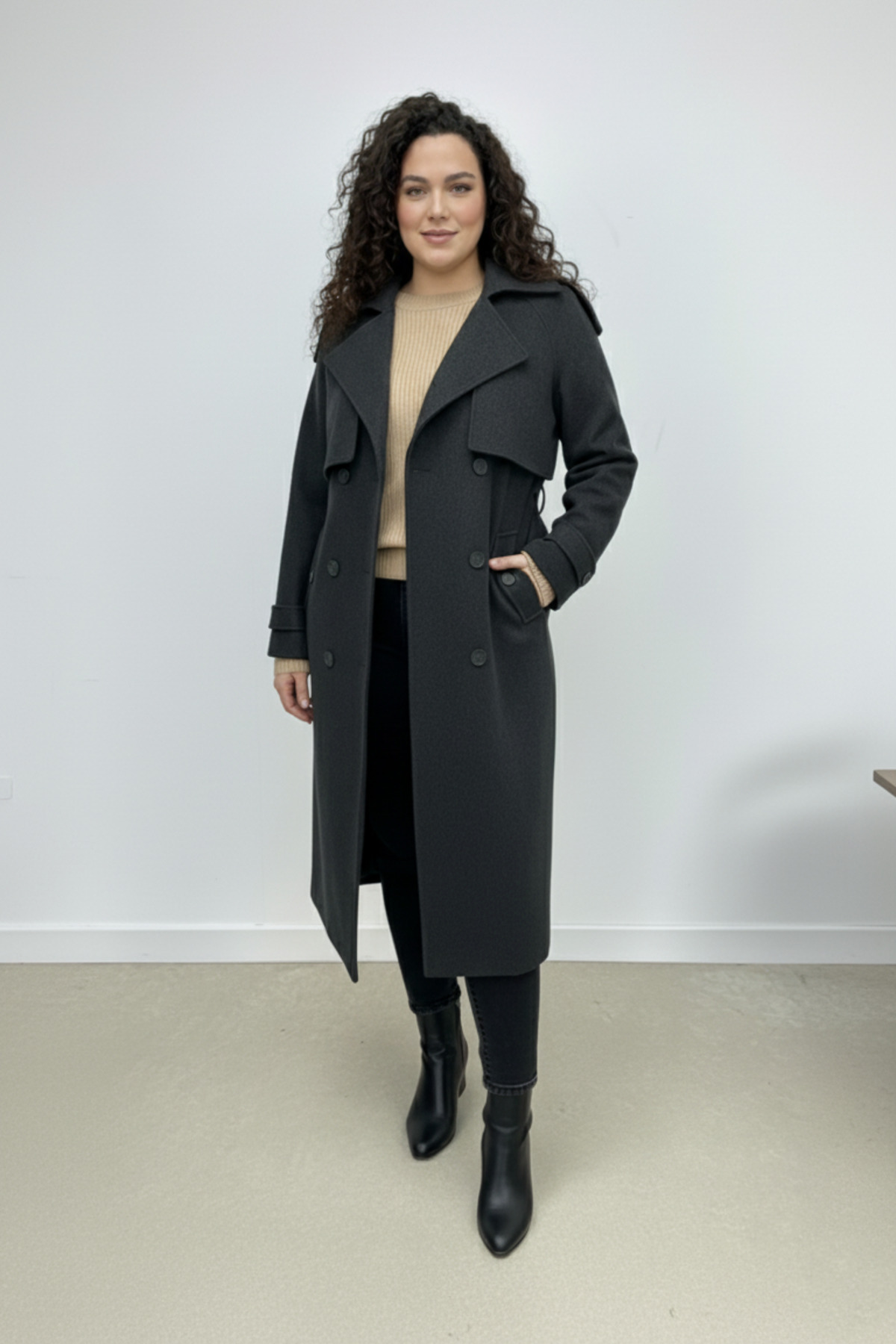 - Ceket yaka tasarımı, klasik ve zamansız bir stil sunarken aynı zamanda modern çizgilerle harmanlanır.