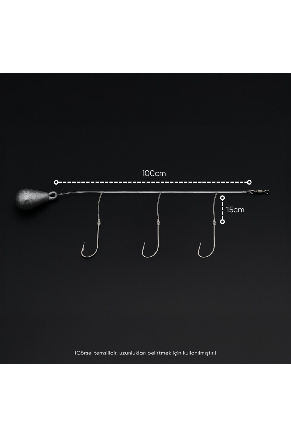 3 İğneli Kurşunlu Beden Takımı - Dip Beden Oltası - Fırdöndülü - 35 gr