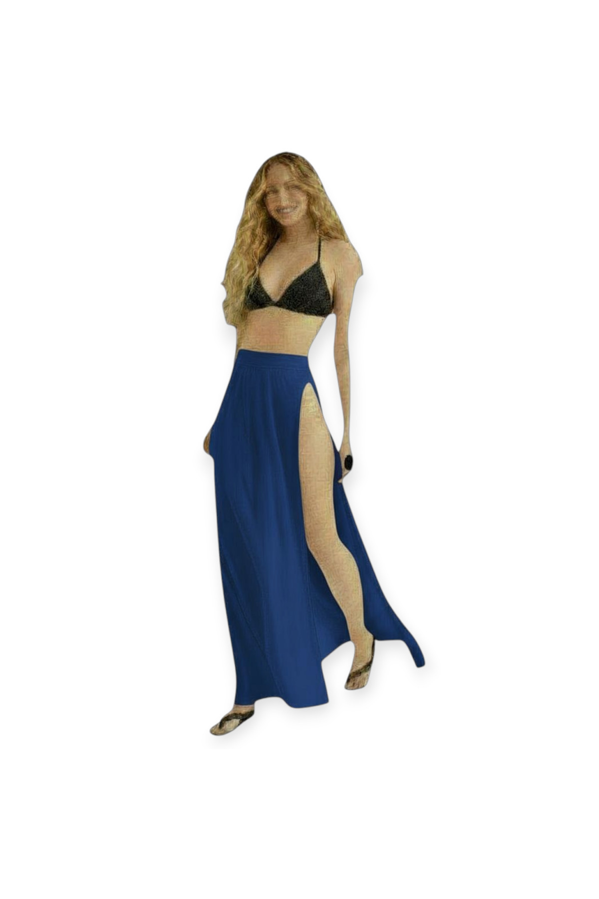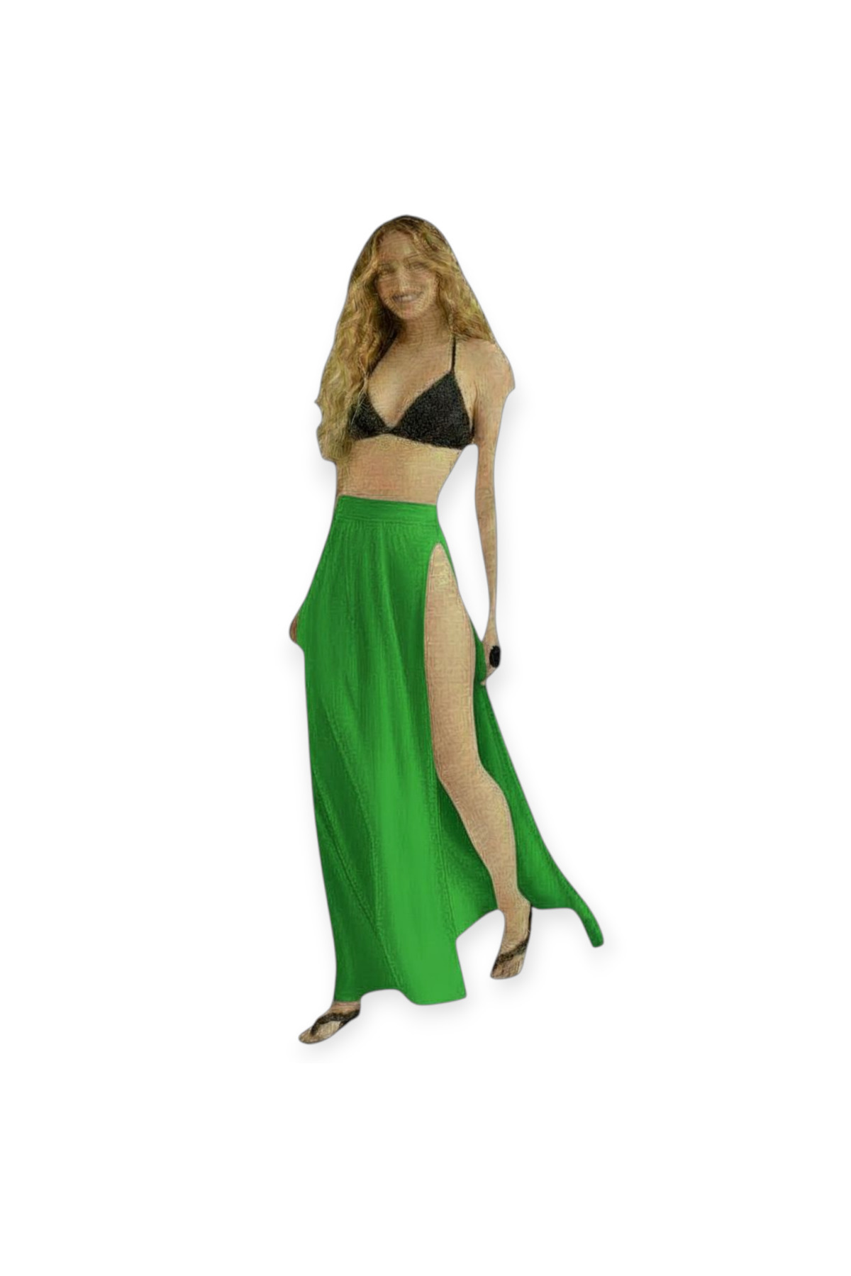 • Beli lastikli yansan derin yırtmaçlı uzun tak çıkart çok rahat kullanışlı şifon tül etek