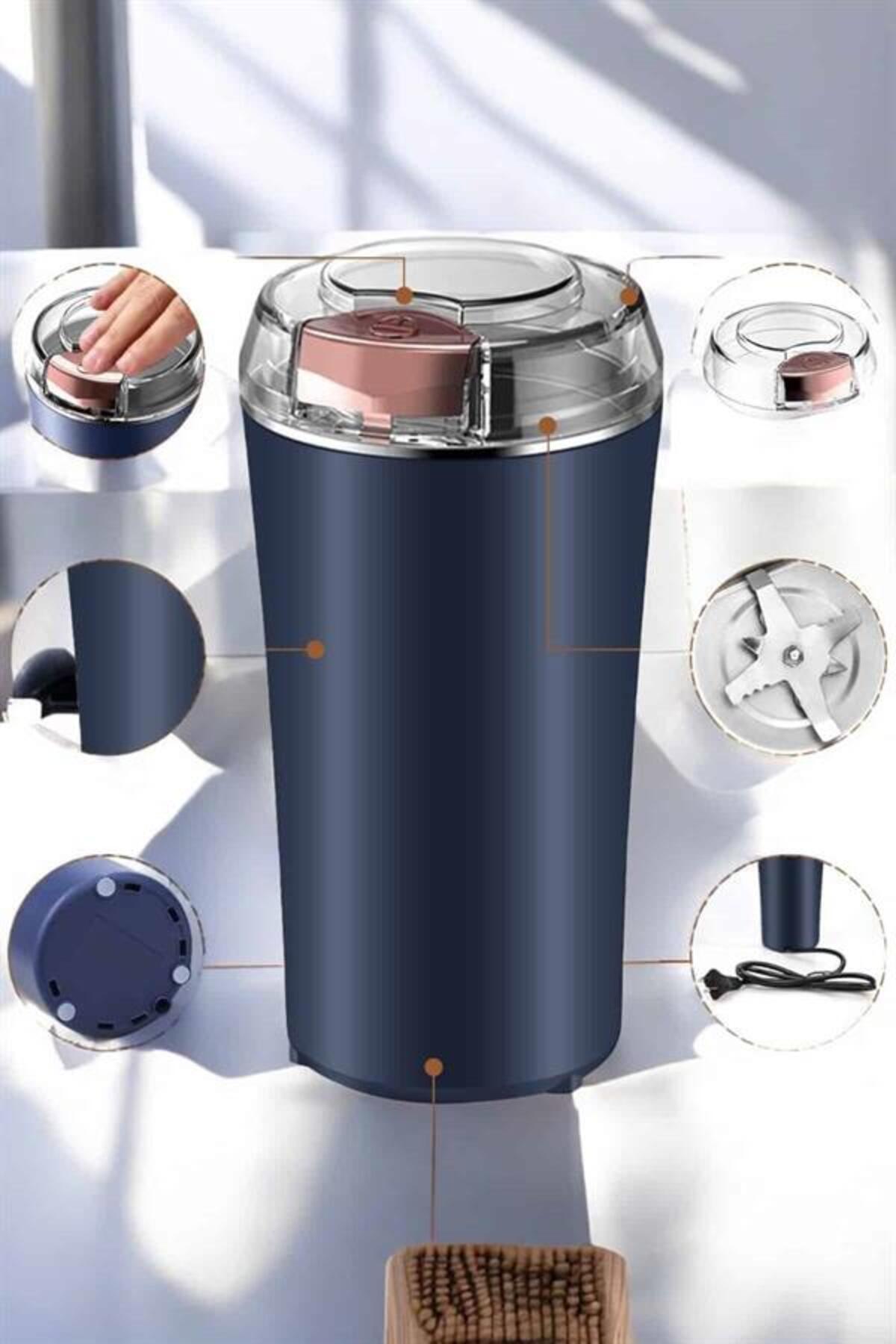 Dayanıklı paslanmaz çelik malzemeden üretilen bu otomatik kahve ve baharat öğütücü, mutfakta uzun ömürlü bir kullanım sunar.