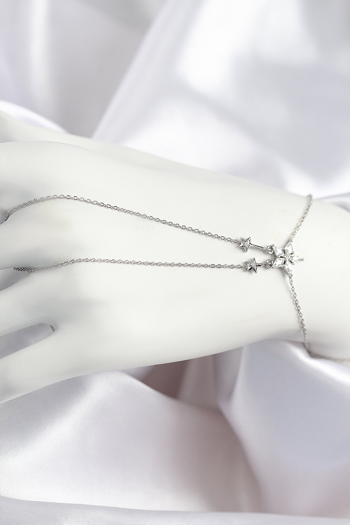 Pirinç Zirkon Taşlı Yıldız Model Gümüş Renk Şahmeran - TJ-SN711