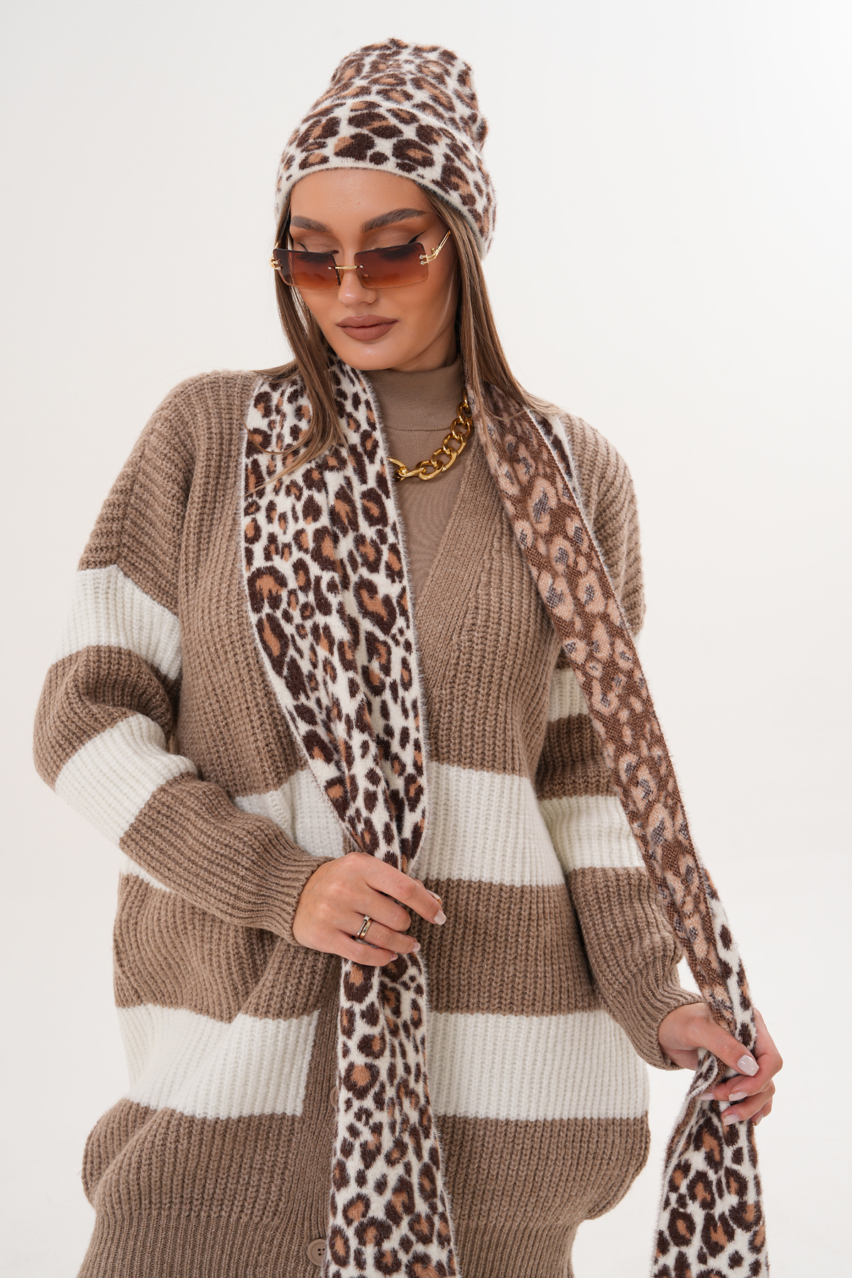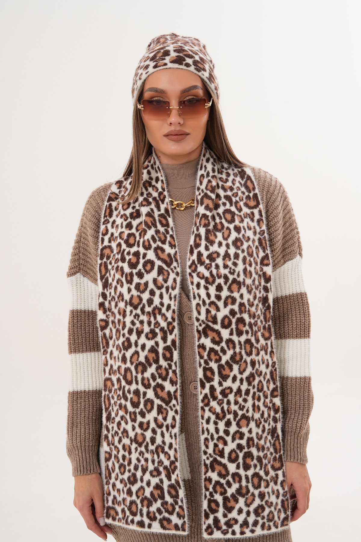 • - Desenli tasarımı ile şıklığınızı tamamlayan leopar atki ve bere seti, kış aylarında stilinizi yansıtır.