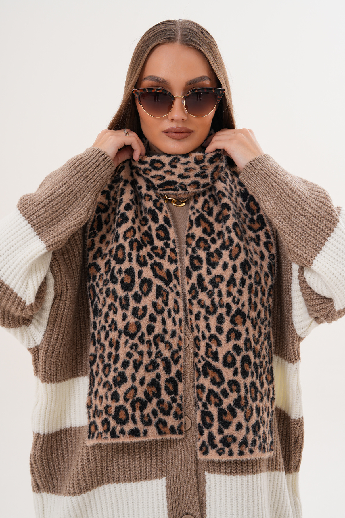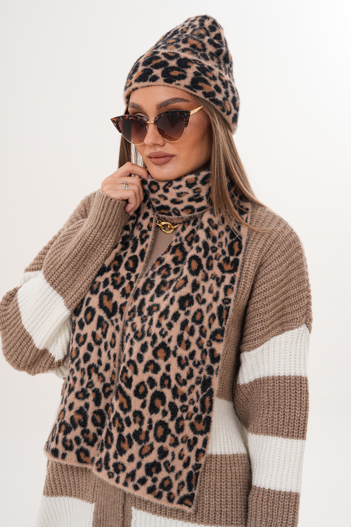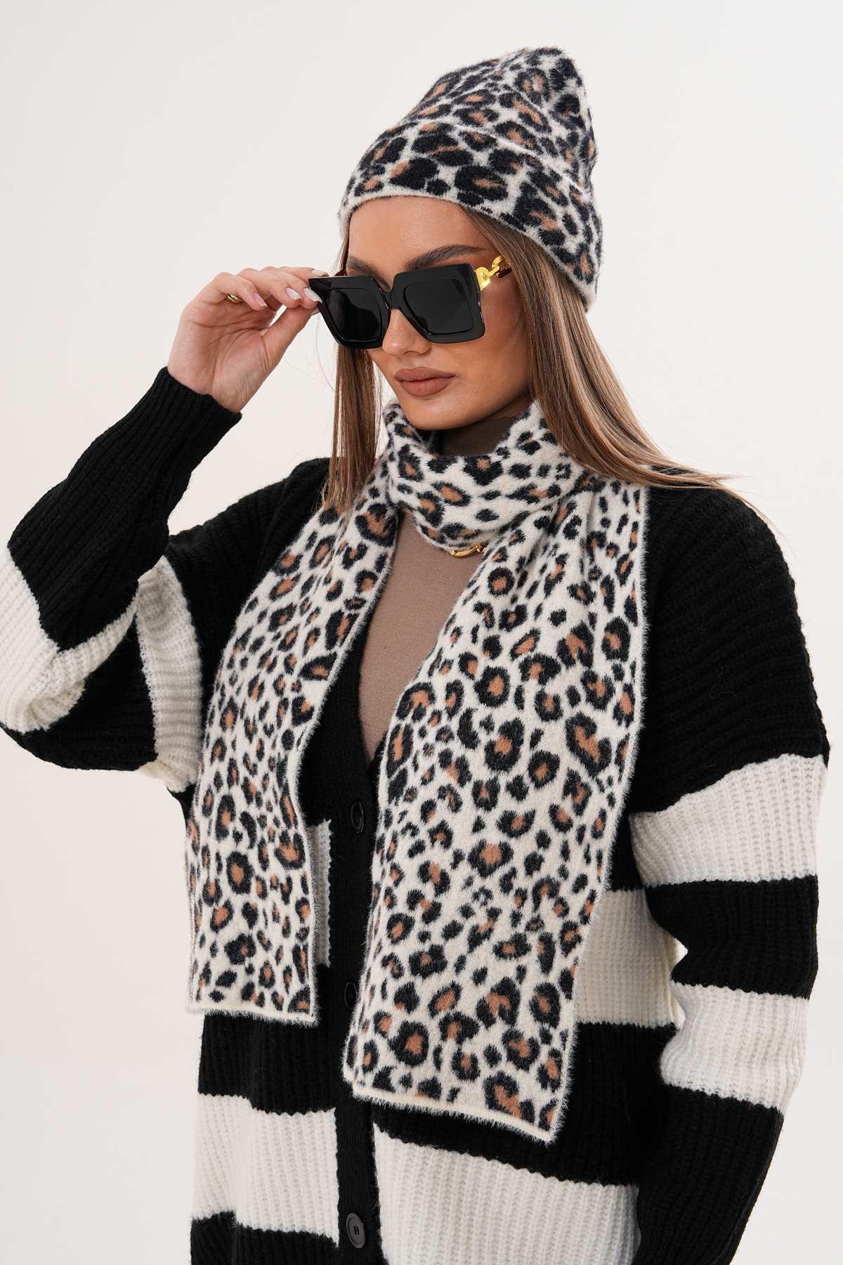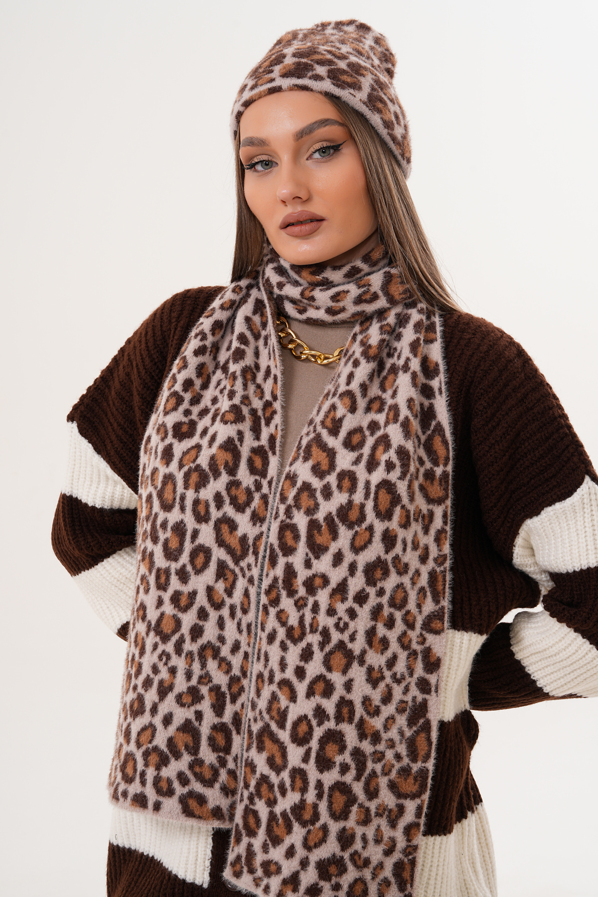 • - Desenli tasarımı ile şıklığınızı tamamlayan leopar atki ve bere seti, kış aylarında stilinizi yansıtır.