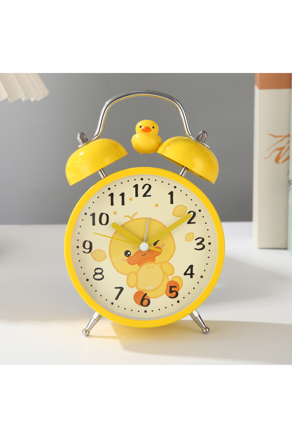 Civcivli Metal Masa Saati, Alarmlı ve Işıklı, Sarı, 15x12