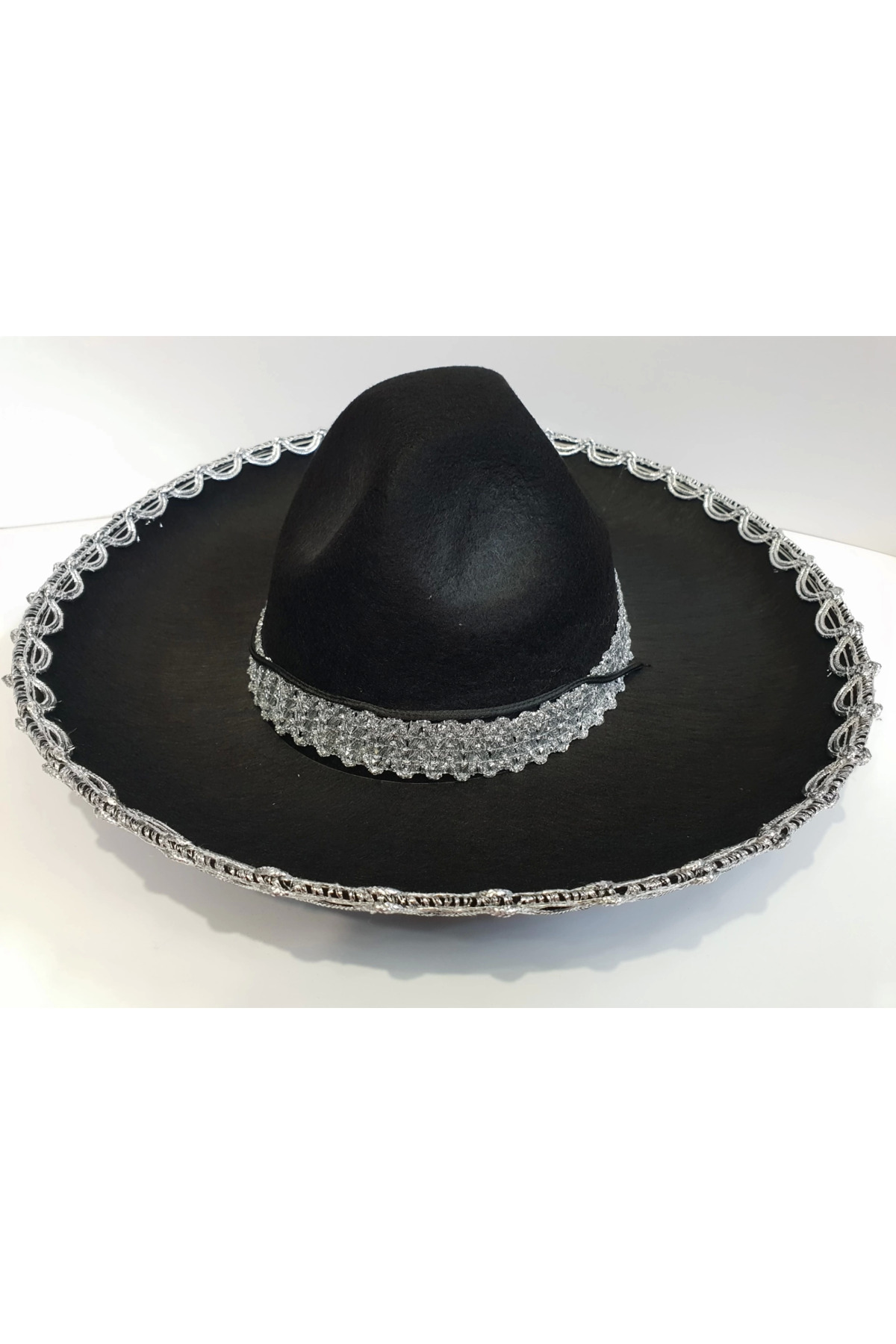Gümüş Renk Şeritli Meksika Mariachi Latin Şapkası 55 Cm Çocuk
