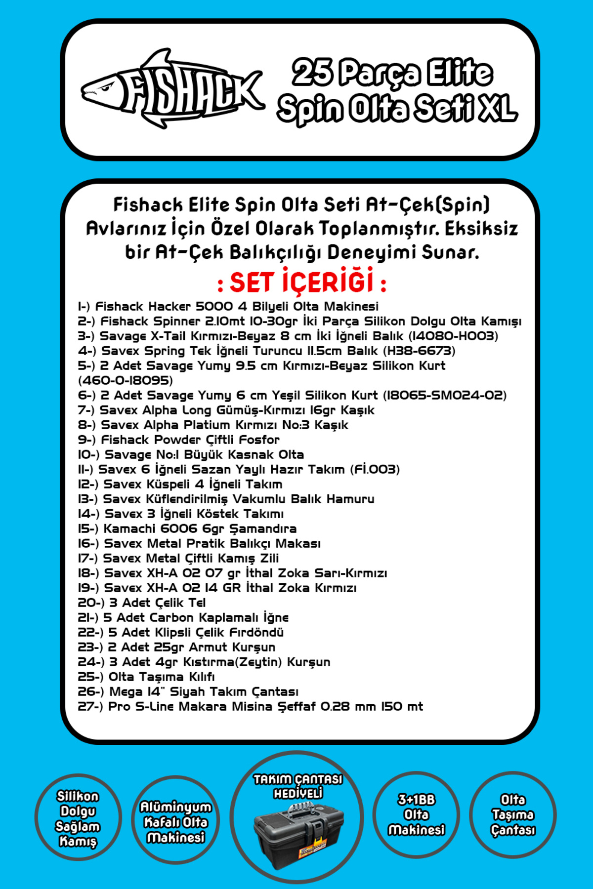 Fishack 42 Parça Elite Spin At-Çek Deniz ve Göl Olta Seti XL - 2.10MT / 10-30GR