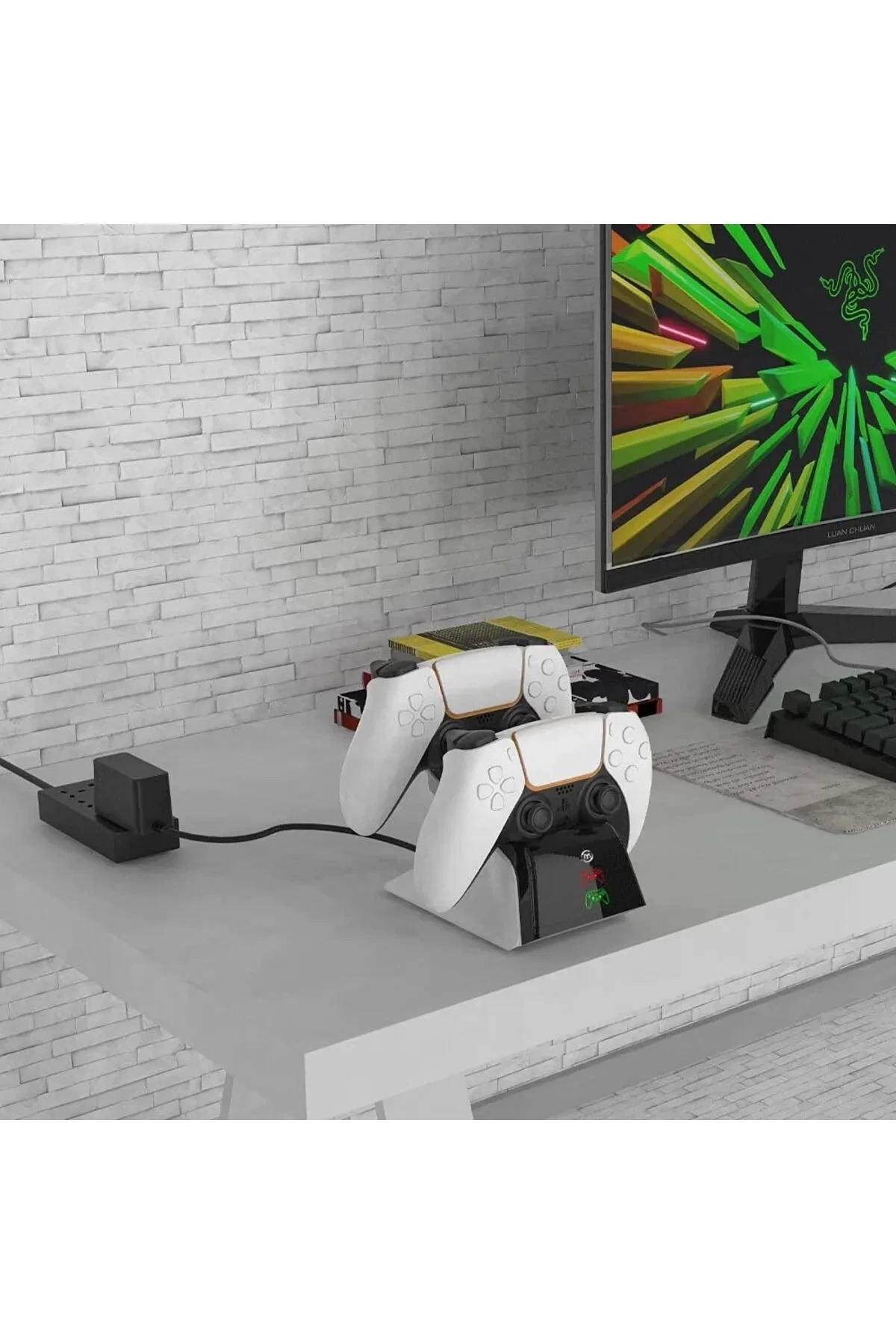 PS5/PS5 Slim/PS5 PRO Gamepad Hızlı Şarj İstasyonu Çift Kol Şarj Ünitesi AC Adaptörlü Çift Şarj Cihazı: Aynı anda 2 DualSense kablosuz kumandayı şarj edin Birinci sınıf çip ve çoklu koruma güvenlik sistemi, mümkün olan en hızlı ve en güvenli şarjı sunmak için bir araya geliyor LED göstergesi ile şarj durumunu tek bakışta kontrol edin.