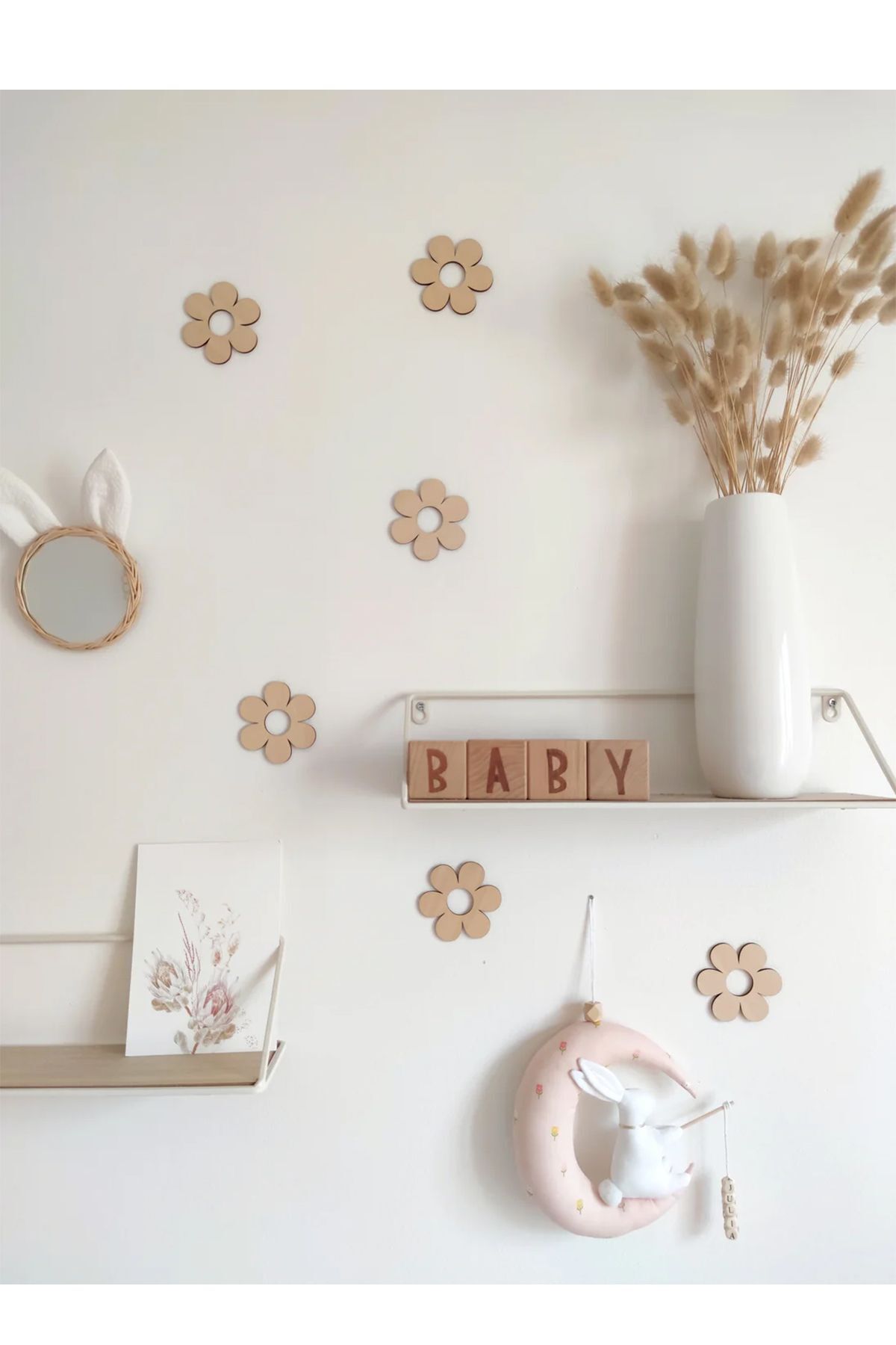 -Bu küçük ahşap papatyalar ile bebek ve çocuk odanıza doğal tatlılık ve şirinlik katın.