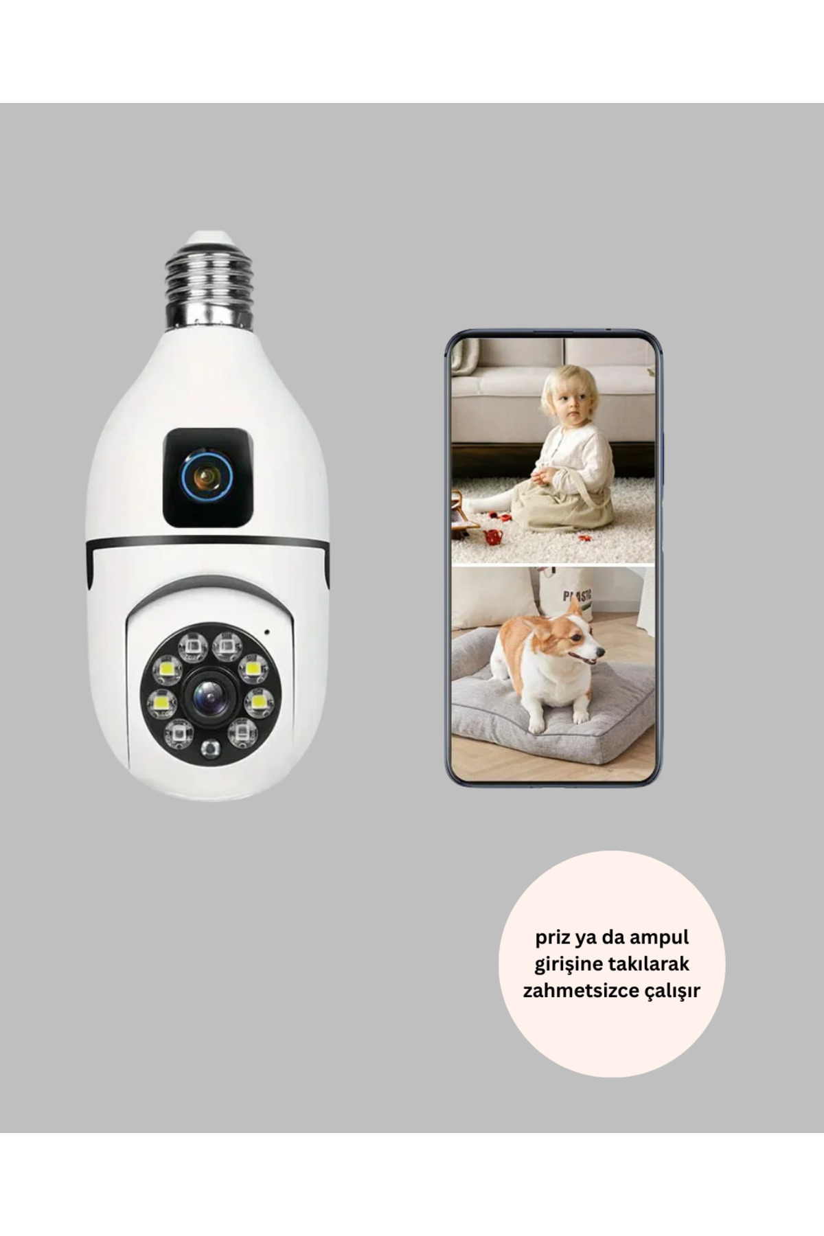 Ampul güvenlik kamerası, 360 derece dönebilen yapısı ile kör nokta bırakmadan tüm alanı izler.