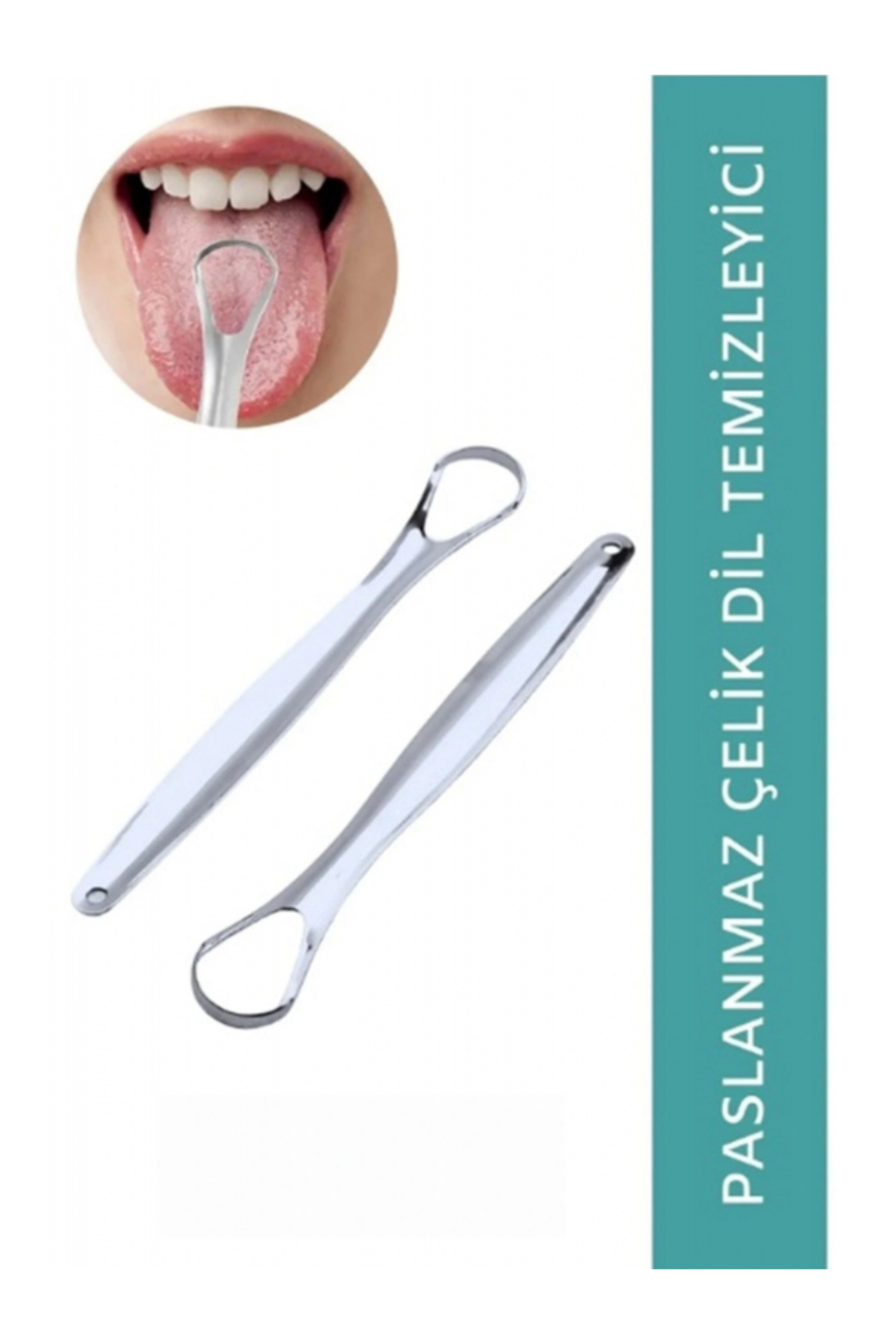 PASLANMAZ ÇELİK DİL TEMİZLEYİCİAğız hijyeninizi bir üst seviyeye taşıyan paslanmaz çelik dil temizleyici, ağız kokusunu azaltmaya ve genel ağız sağlığınızı iyileştirmeye yardımcı olur.