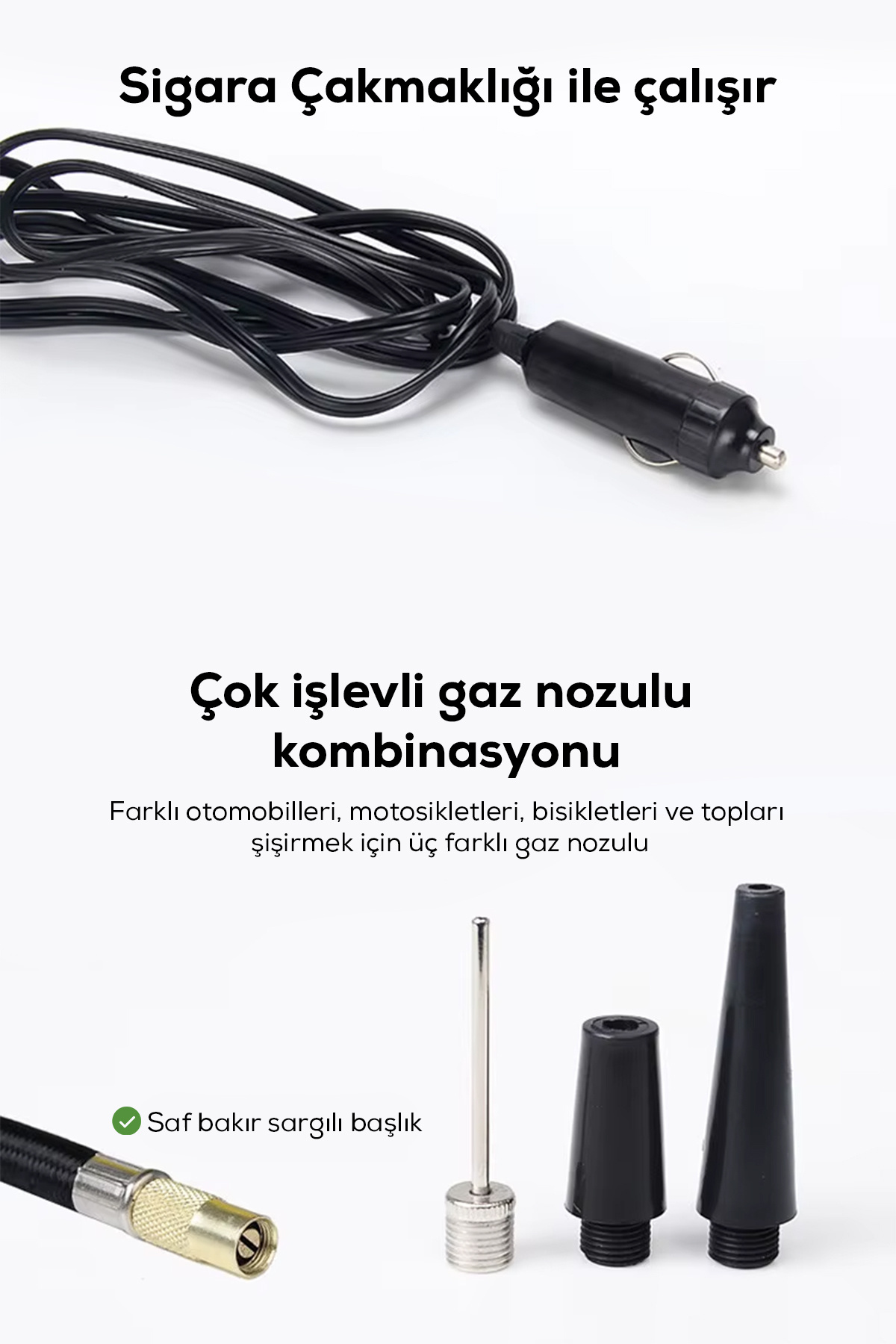 Çok Fonksiyonlu 12V Kompresör – Top, Bisiklet ve Araç Lastiği Şişirme