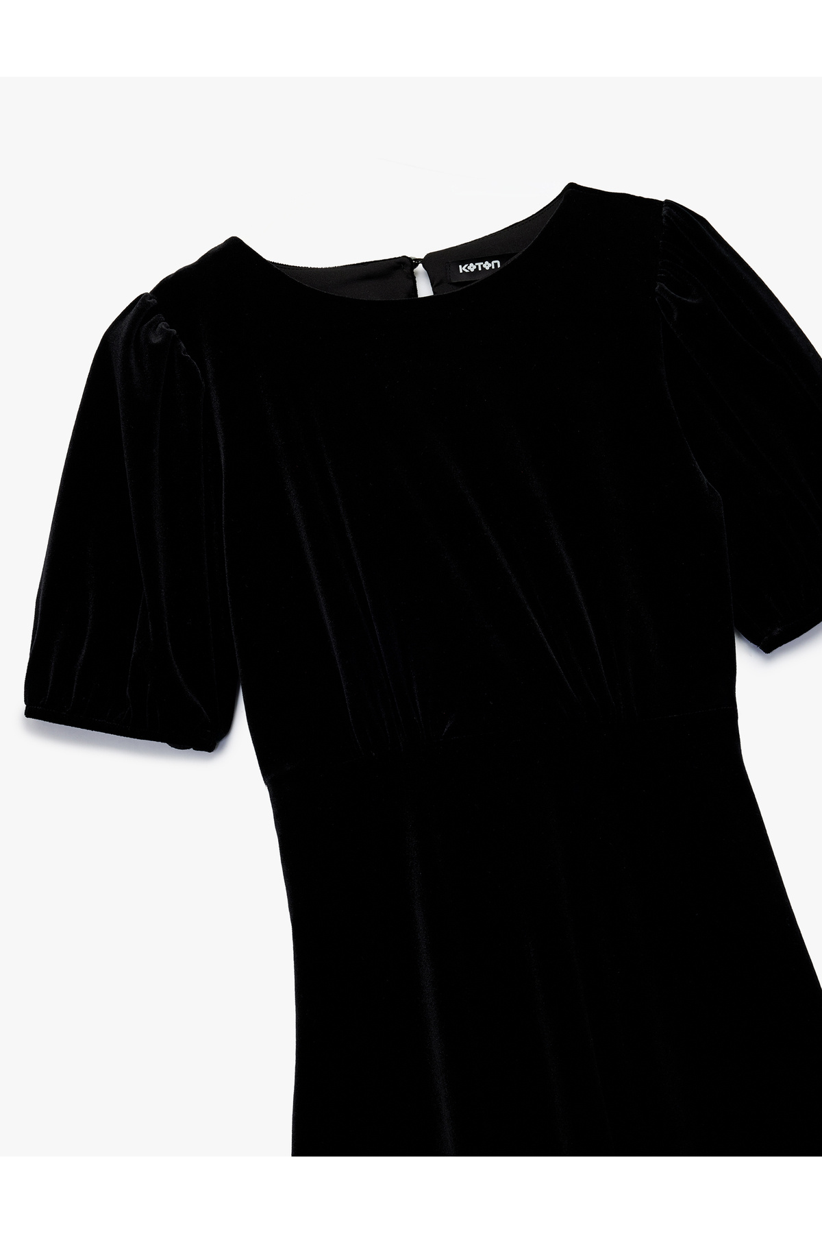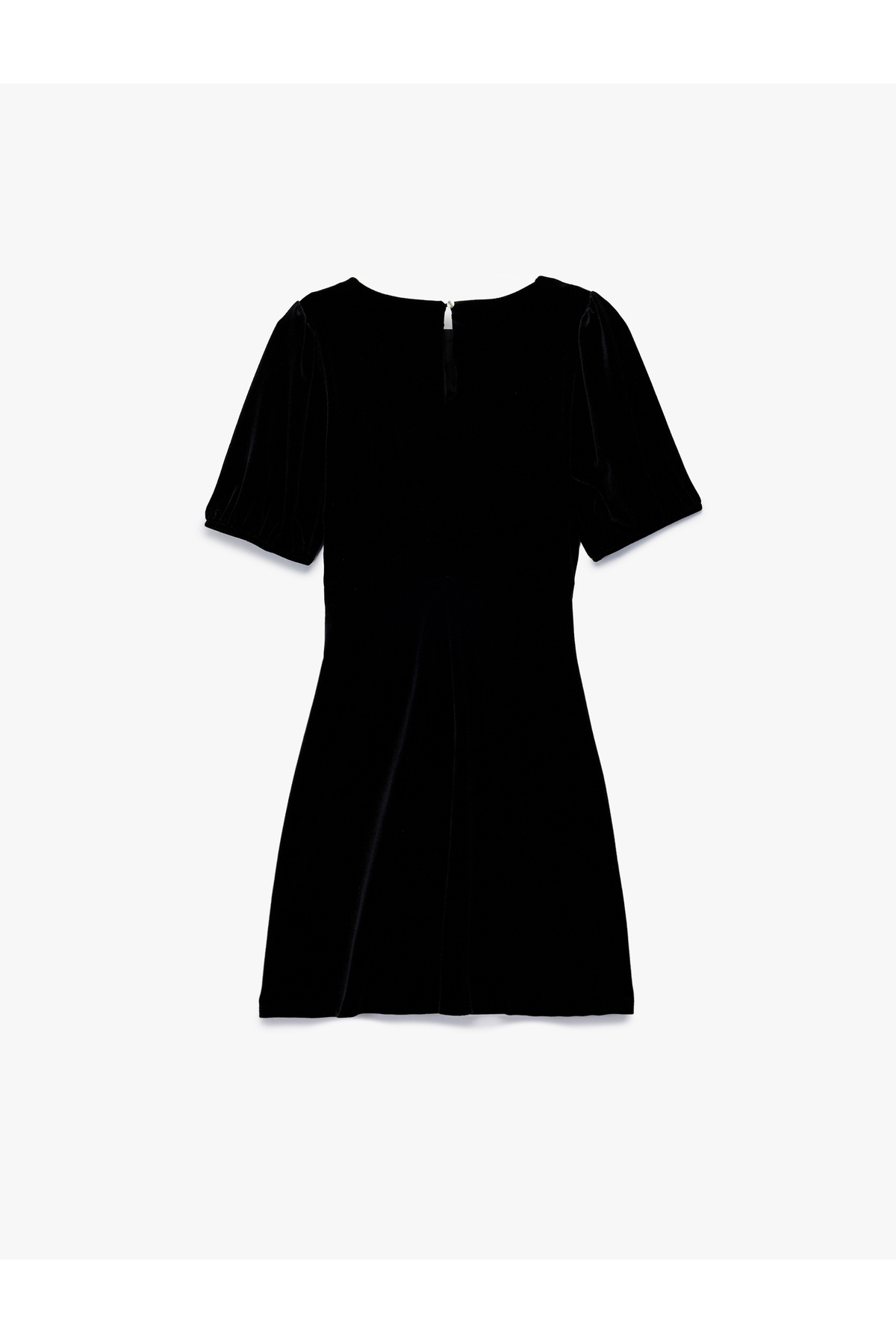 Bisiklet Yaka A Kesim Kısa Kollu Mini Kadife Elbise