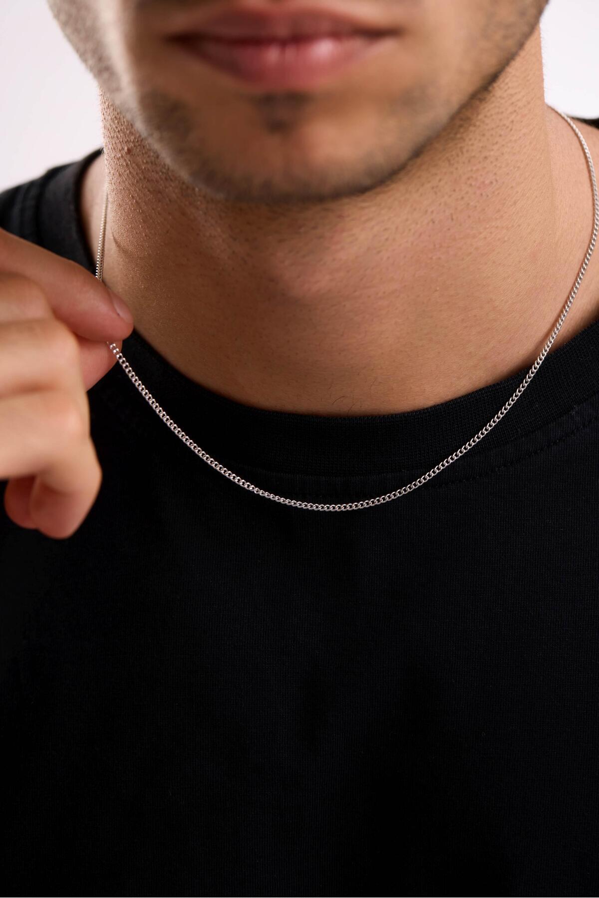 14 Ayar Gurmet Beyaz Zincir Erkek Altın Kolye