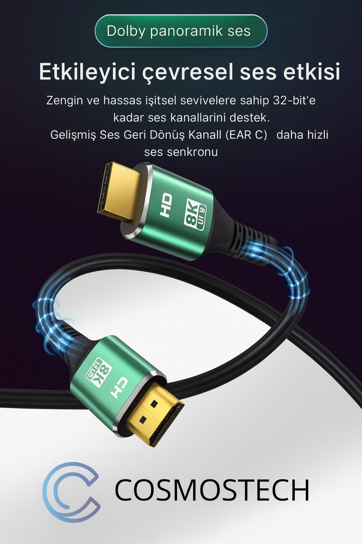 8K HDMI 2.1V Kablo 2 Metre – Ultra Yüksek Hız - Dolby Vision & HDR10 Destekli, Ps5 / Fire Tv / Xbox