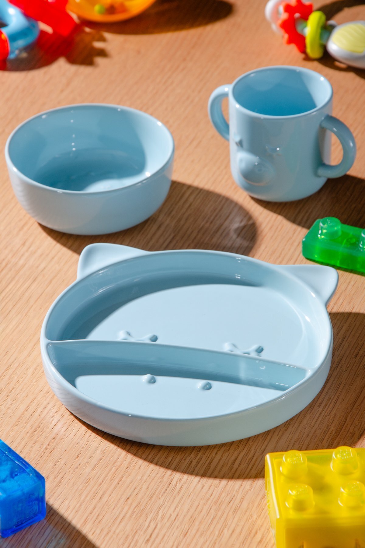 Lulu 3 Parça Zürafa Desenli Mama Seti | Mavi