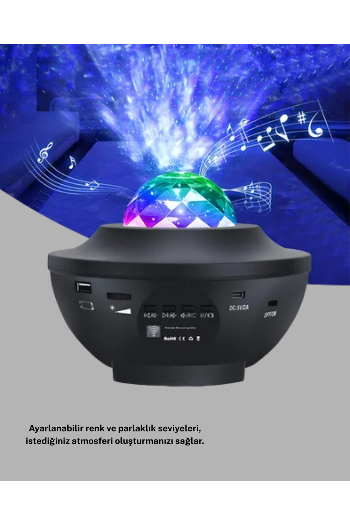 Üzerindeki butonlarla renk modu, parlaklık seviyesi ve galaxy efekti hızlı şekilde değiştirilebilir.