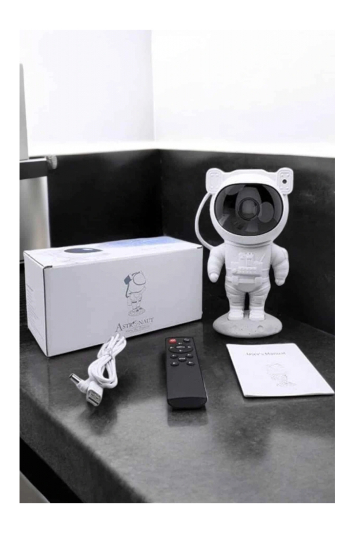 bir astronot projeksiyon lambası, bir taban, USB güç kablosu, İngilizce kullanım kılavuzu ve uzaktan kumanda (piller hariç) içermektedir.