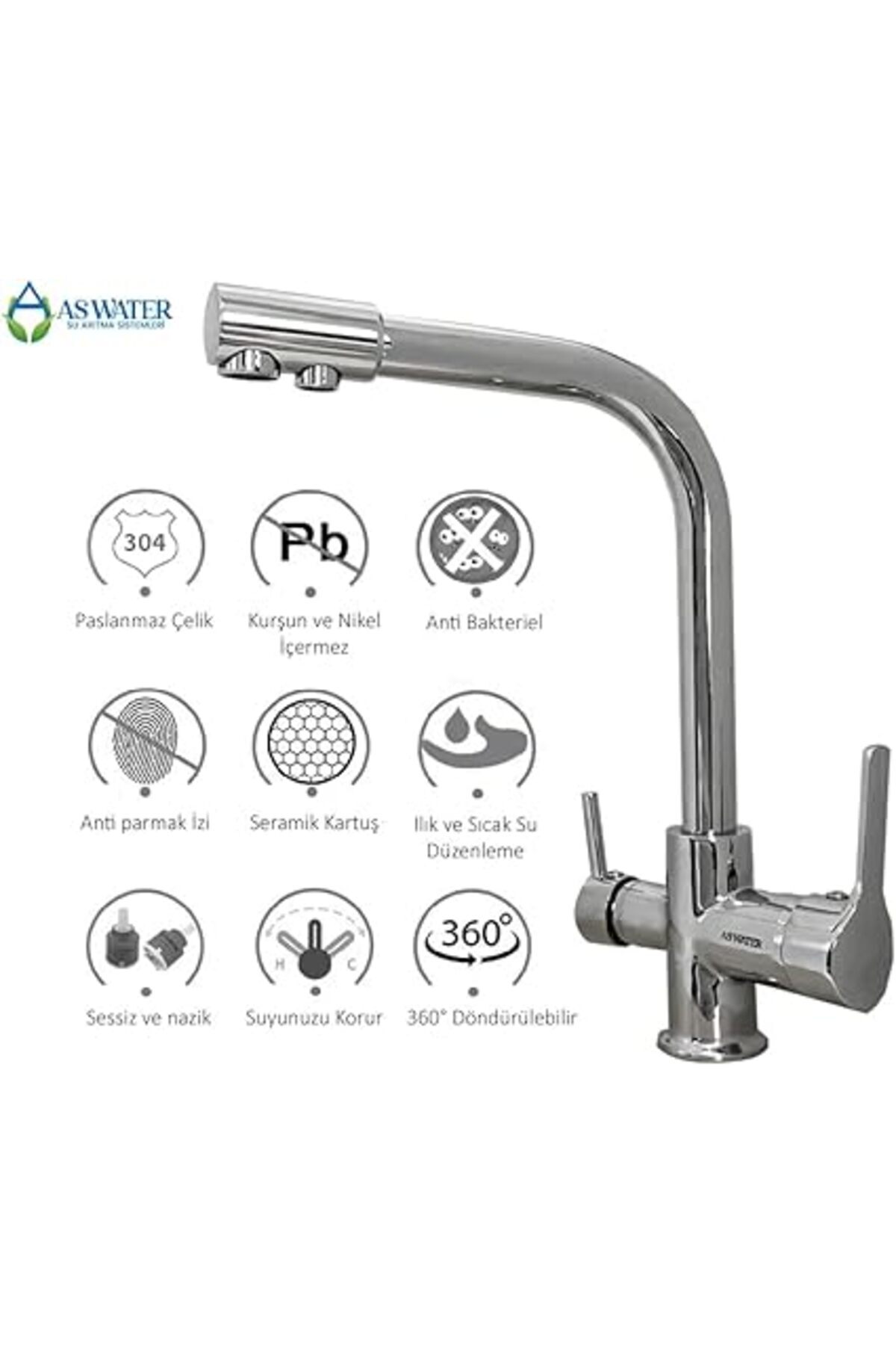 water Arıtma Bataryası 3 Yollu Musluk Sıcak-soğuk Mix Arıtma Krom, 41553YK