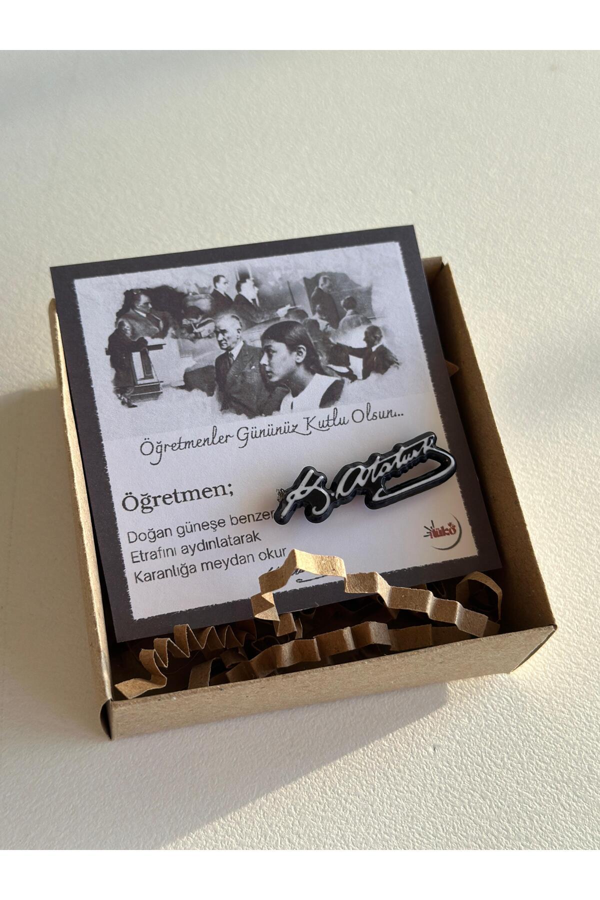 - Atatürk'ün imzasını taşıyan bu rozet, 24 Kasım Öğretmenler Günü'nü kutlamak için ideal bir aksesuar.