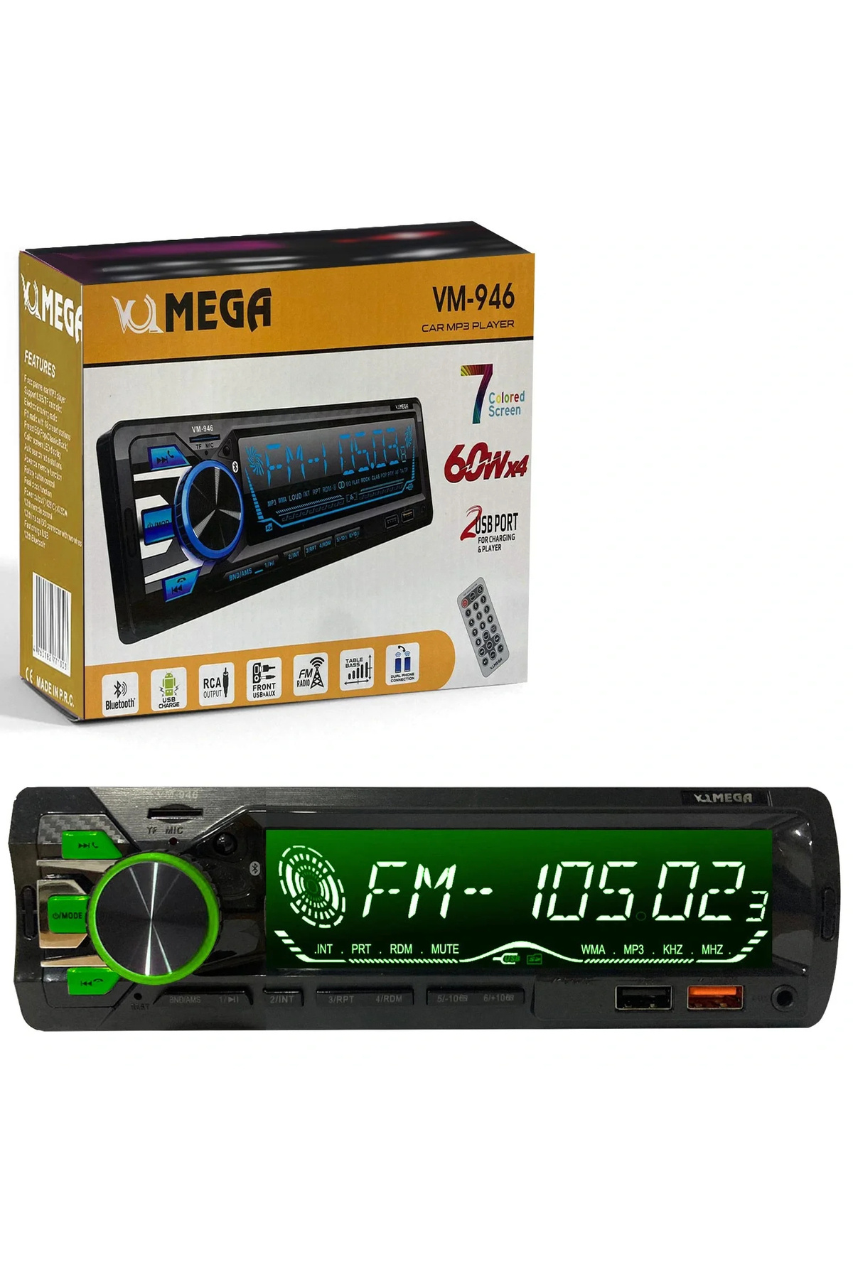 Mega Vm-946 Oto Teyp 4x60 Watt Bluetooth Büyük Ekran 2xusb Sd Fm Aux 7 Renk Ekranlı