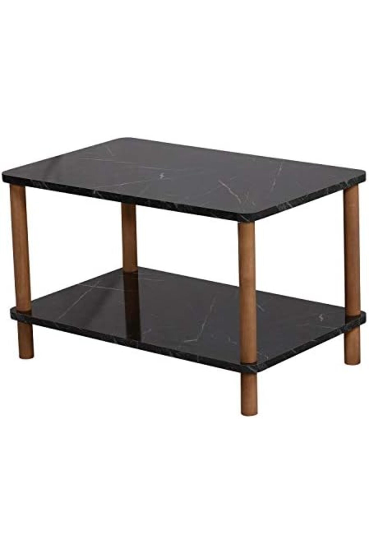 Orta Sehpa Orta Sehpa Dikdörtgen Ahşap Ayaklı Iki Katlı Gazetelikli - Siyah Mermer Desenli Orta Sehpa Dikdörtgen Ahşap Ayaklı Iki Katlı Gazetelikli - Siyah Mermer Desenli