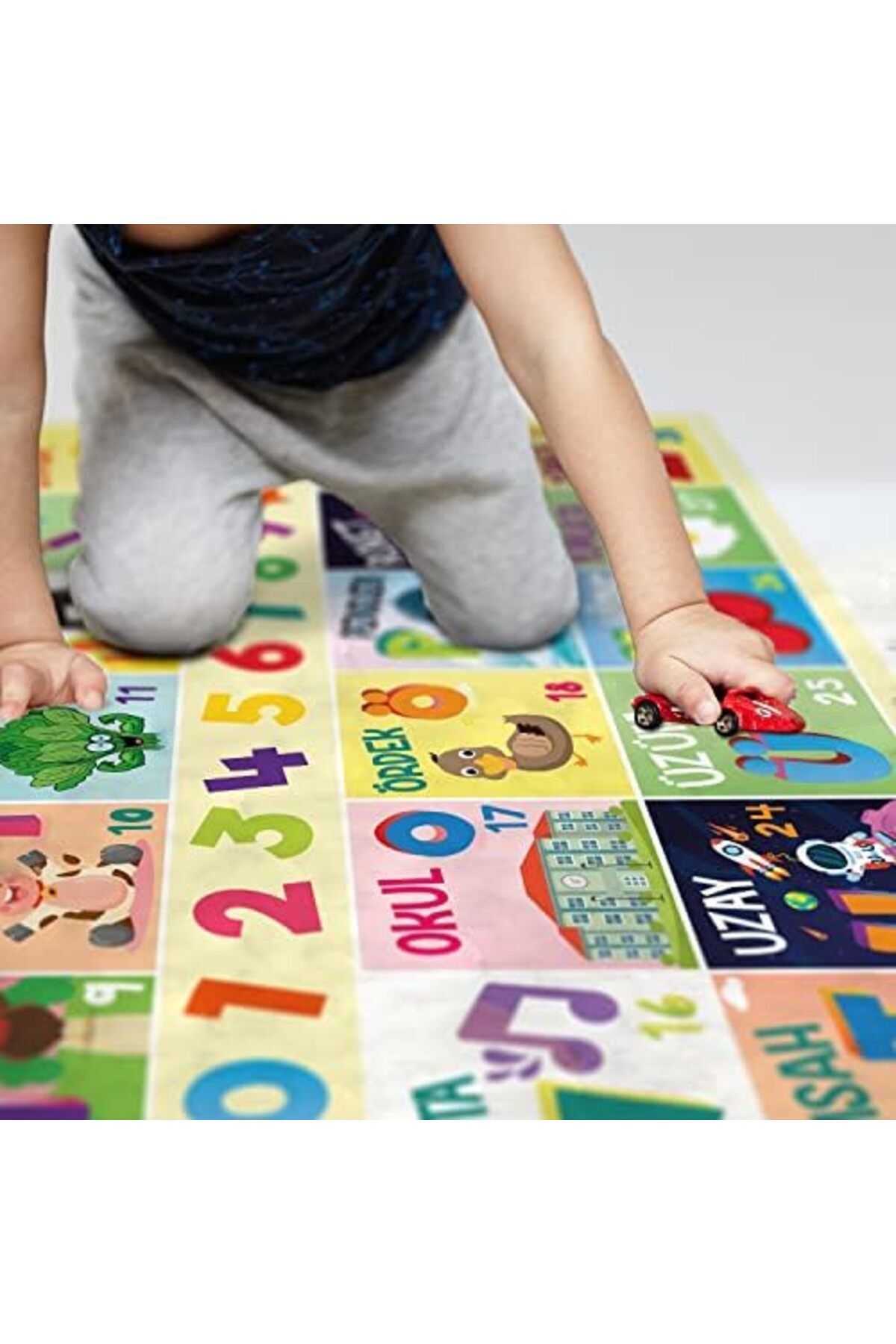 Ölçüler 95 x 145 cm İç yüzeyi yumuşak polar doku, Dış yüzeyi baskılıdır Kumaş ile bütünleşen baskı teknolojisi ile üretilmektedir Yumuşak dokusu sayesinde çocukların emekleme döneminde dizlerinde ve dirseklerinde oluşabilecek tahrişleri önler Bebeğinizin yer ile temasını engeller konforlu bir zemin sağlar Renkli figürleri ile bebeğinizin duyu gelişimine katkı sağlar Duyular arası uyumu geliştirir ve dikkati canlı tutar El ve göz koordinasyon gelişimini sağlar Kelime Öğretici Oyun Matı - Bebek Oyun Halısı Kelime Öğretici Oyun Matı - Bebek Oyun Halısı