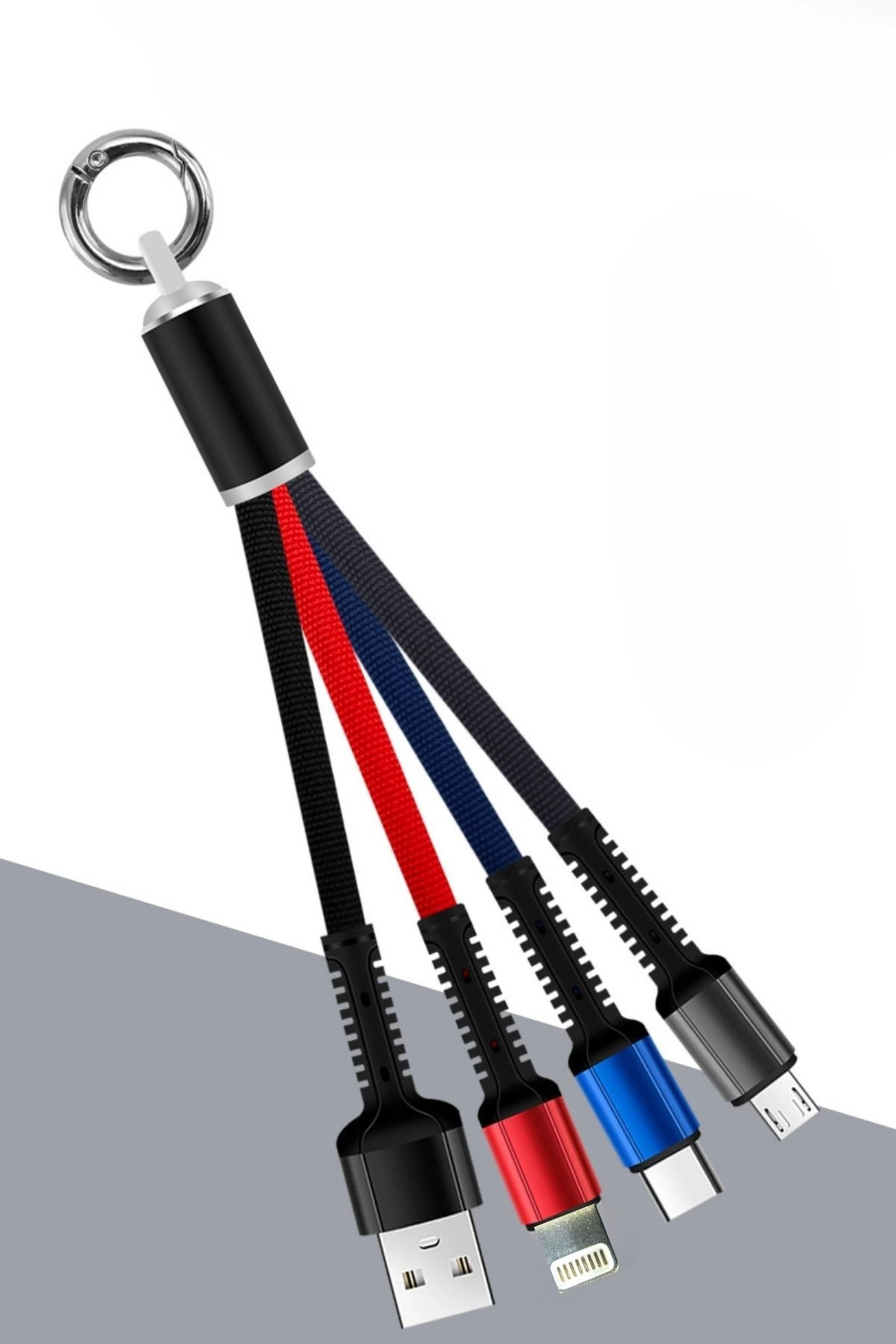 Işıklı Anahtarlık Model 3 İn 1 Usb Çıkışlı Mikro,type-c Ve İphone Uyumlu Şarj Kablosu ( Lisinya )