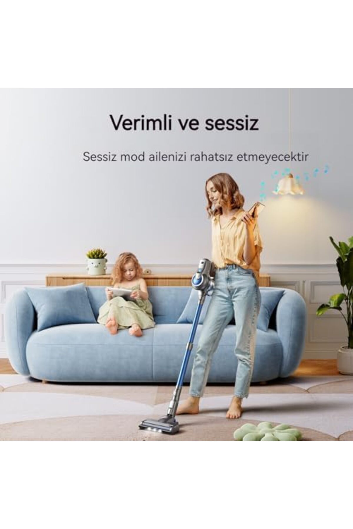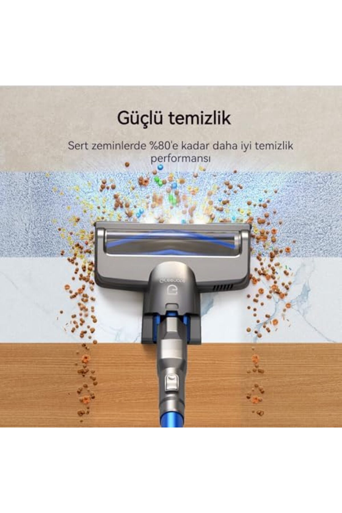 Bu sayede temizliğe daha az, sevdiğiniz şeyleri yapmaya daha çok zaman ayırabilirsiniz Derin Temizlik: Güçlü modda, bu kablosuz elektrikli süpürge, halılardaki kırıntılar, fındık kabukları, arabalardaki kum vb.
