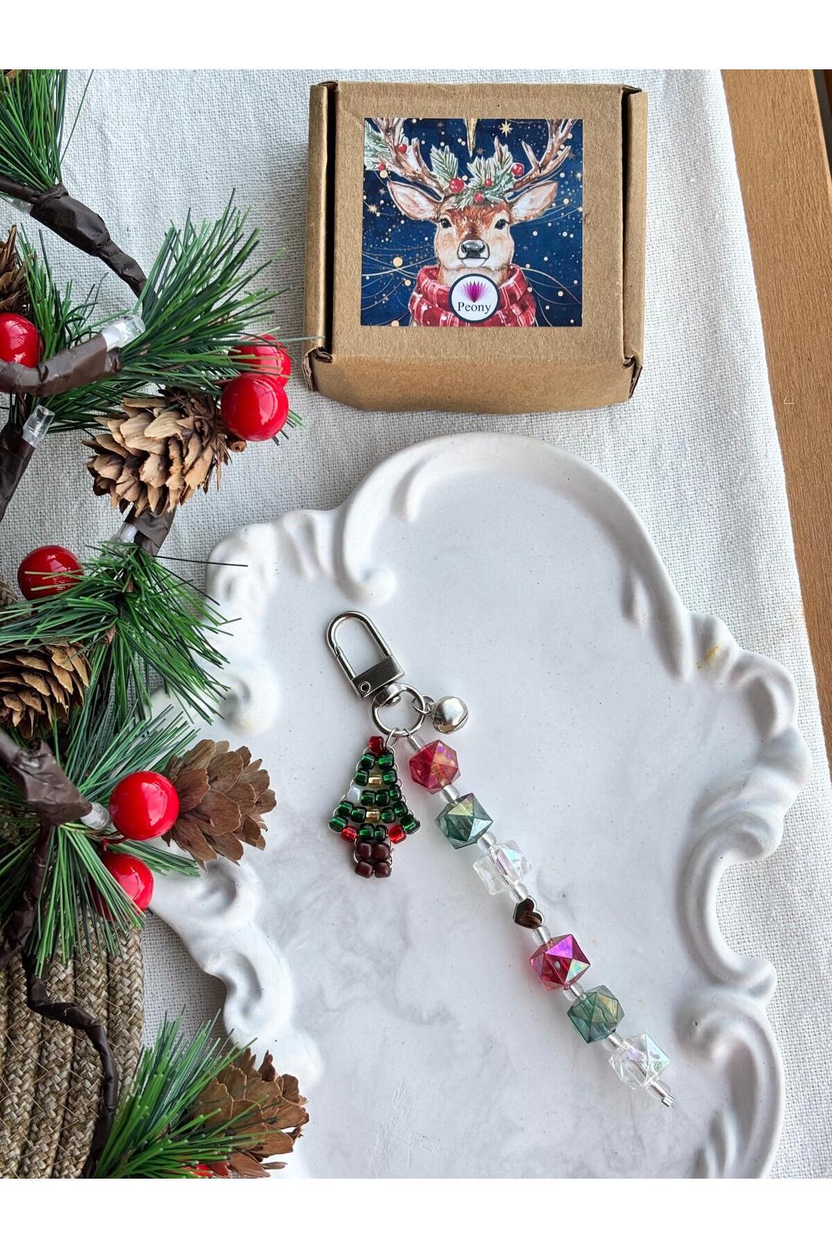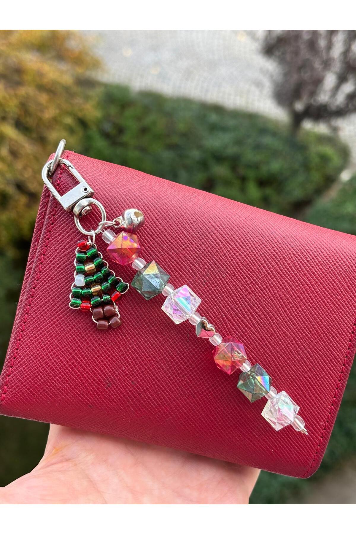 - Klasik tasarımıyla her yılbaşına şıklık katacak boncuklu çam ağacı ve yeni yıl küp detaylı cüzdan süsü.