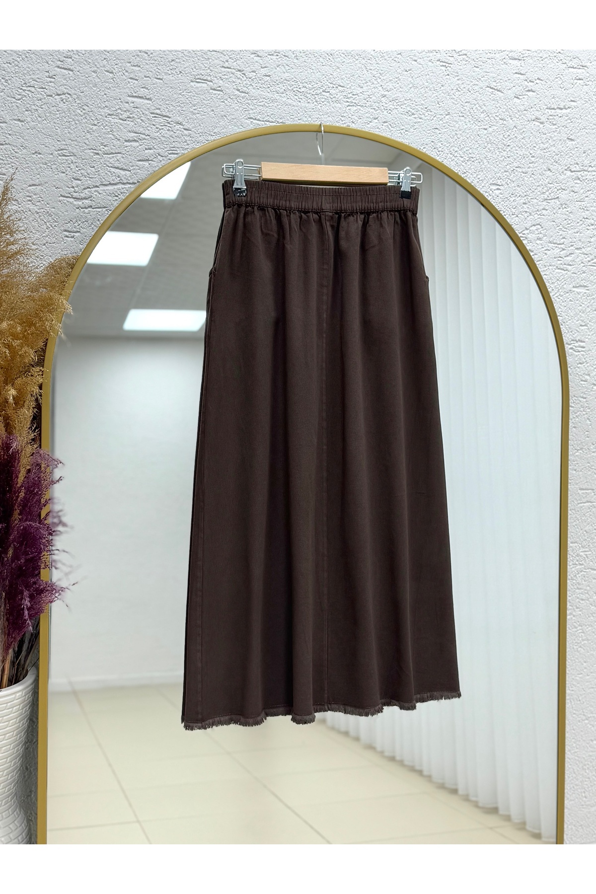 Feyona Altı Püsküllü Gabardin Etek-MA4281 Kahve