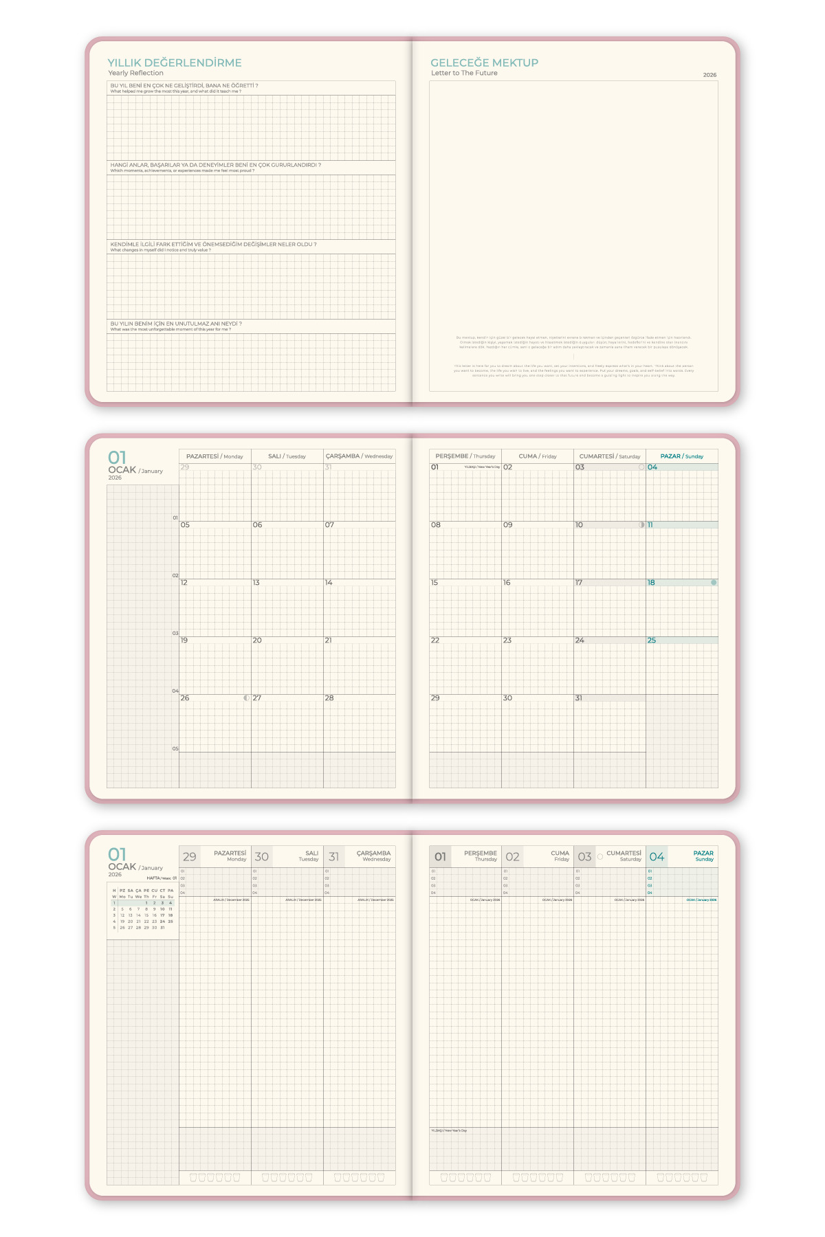 Ajanda Türü: Dikey Haftalık Planlayıcı