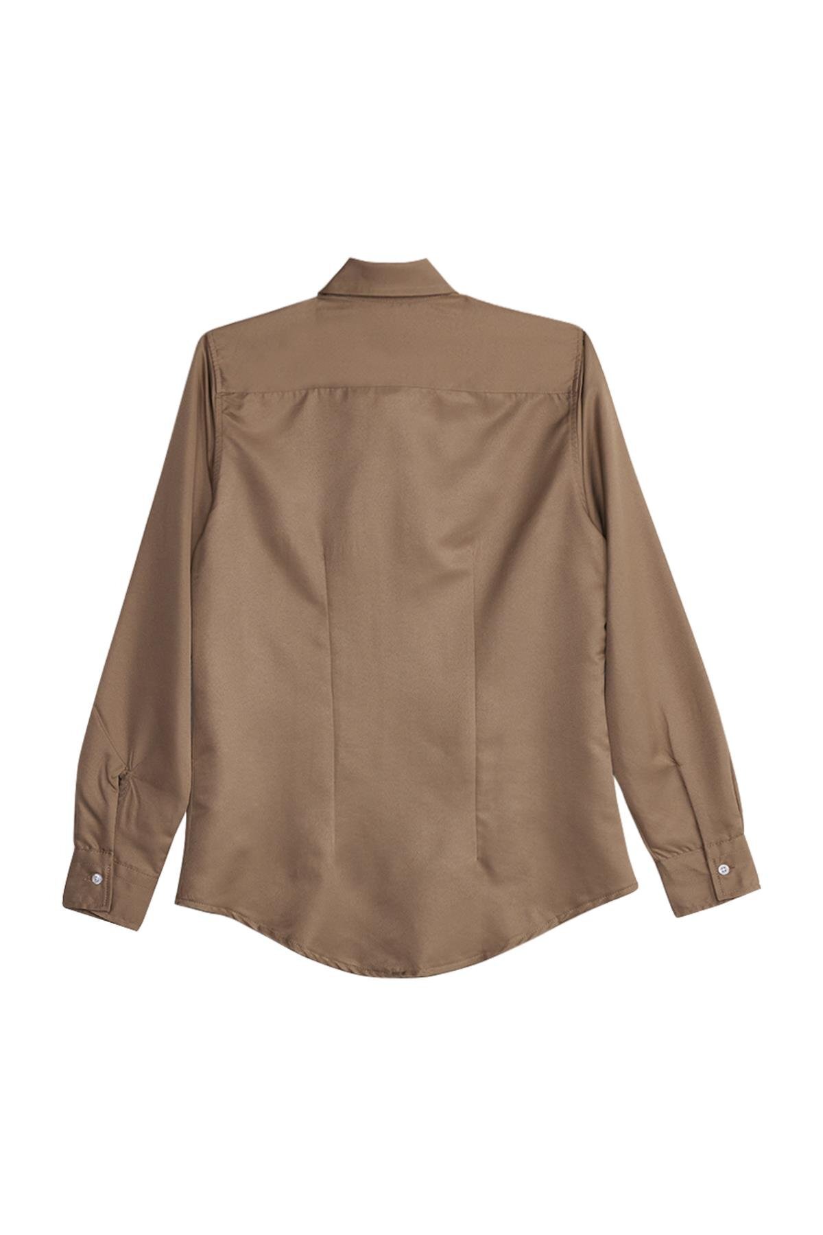 Kadın Slim Fit Dar Kesim Vucüda Oturan Uzun Kollu Gizli Düğme Detaylı Koyu Vizon Basic Gömlek