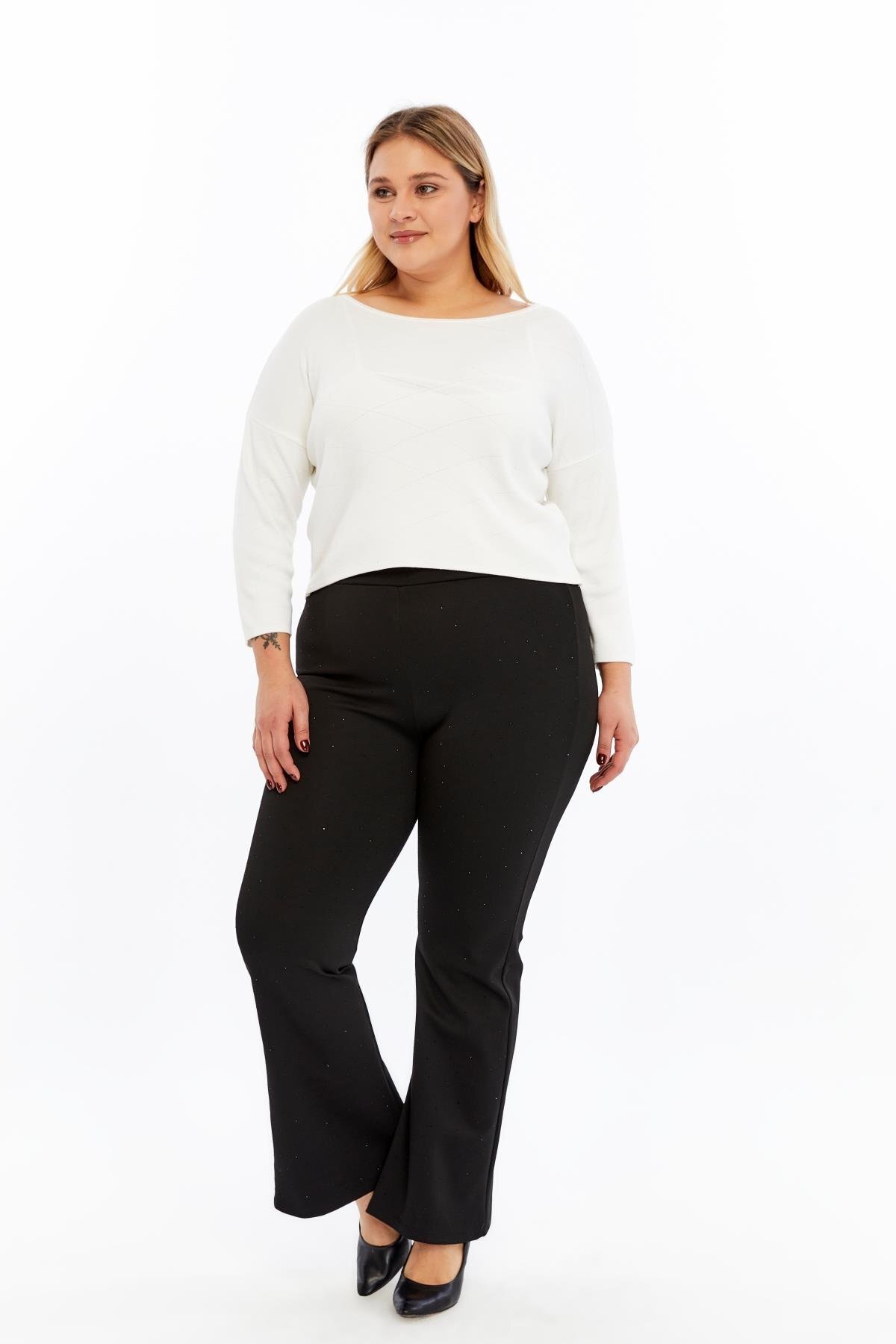 Önü Taşlı Büyük Beden İspanyol Paça Taytpantolon Siyah