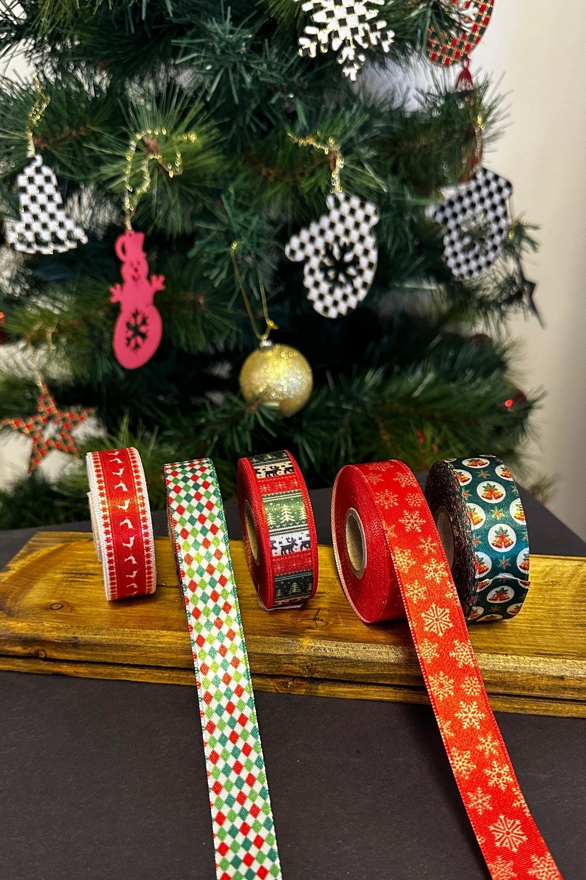 Yılbaşı Temalı 2 cm x 3 Metre - Hediye Paketleme ve Süsleme Kurdelesi (Farklı Model Seçenekleri)