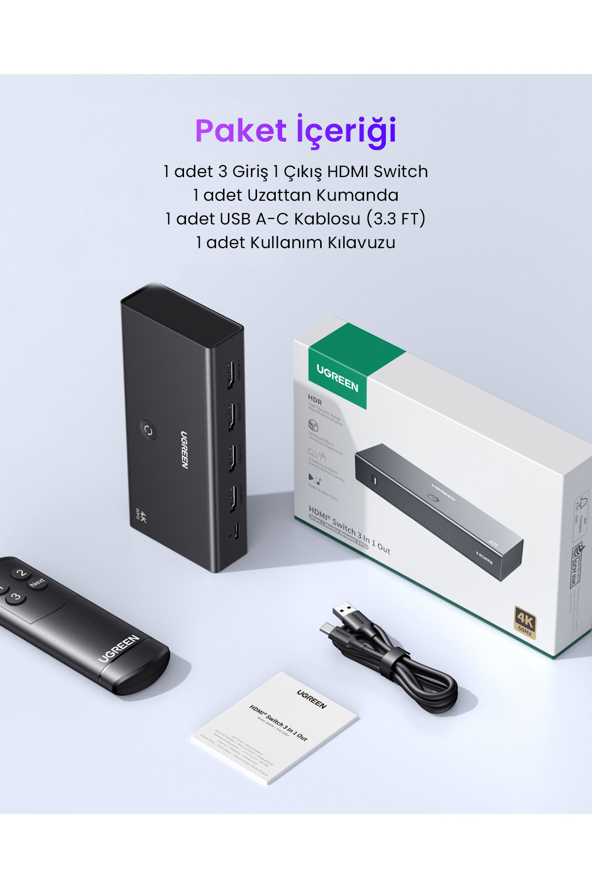 3-in-1 4K@60Hz HDMI Uzaktan Kumandalı Switch, 55857