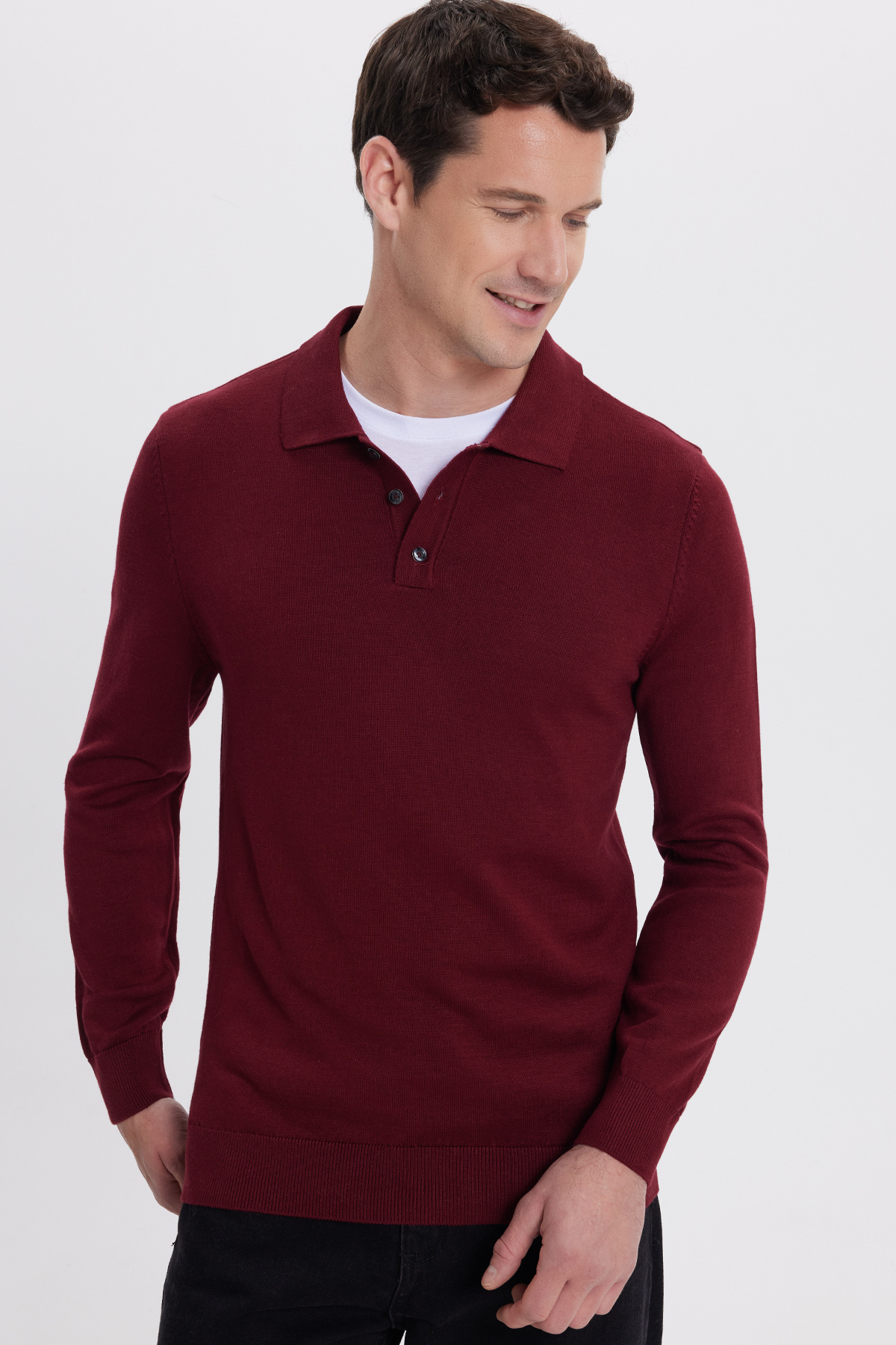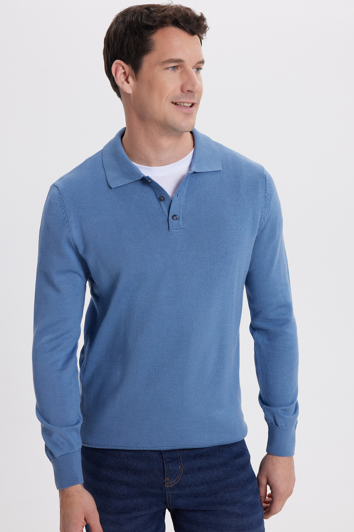 Erkek Standart Fit Normal Kesim Pamuklu Polo Yaka Lacivert Kazak