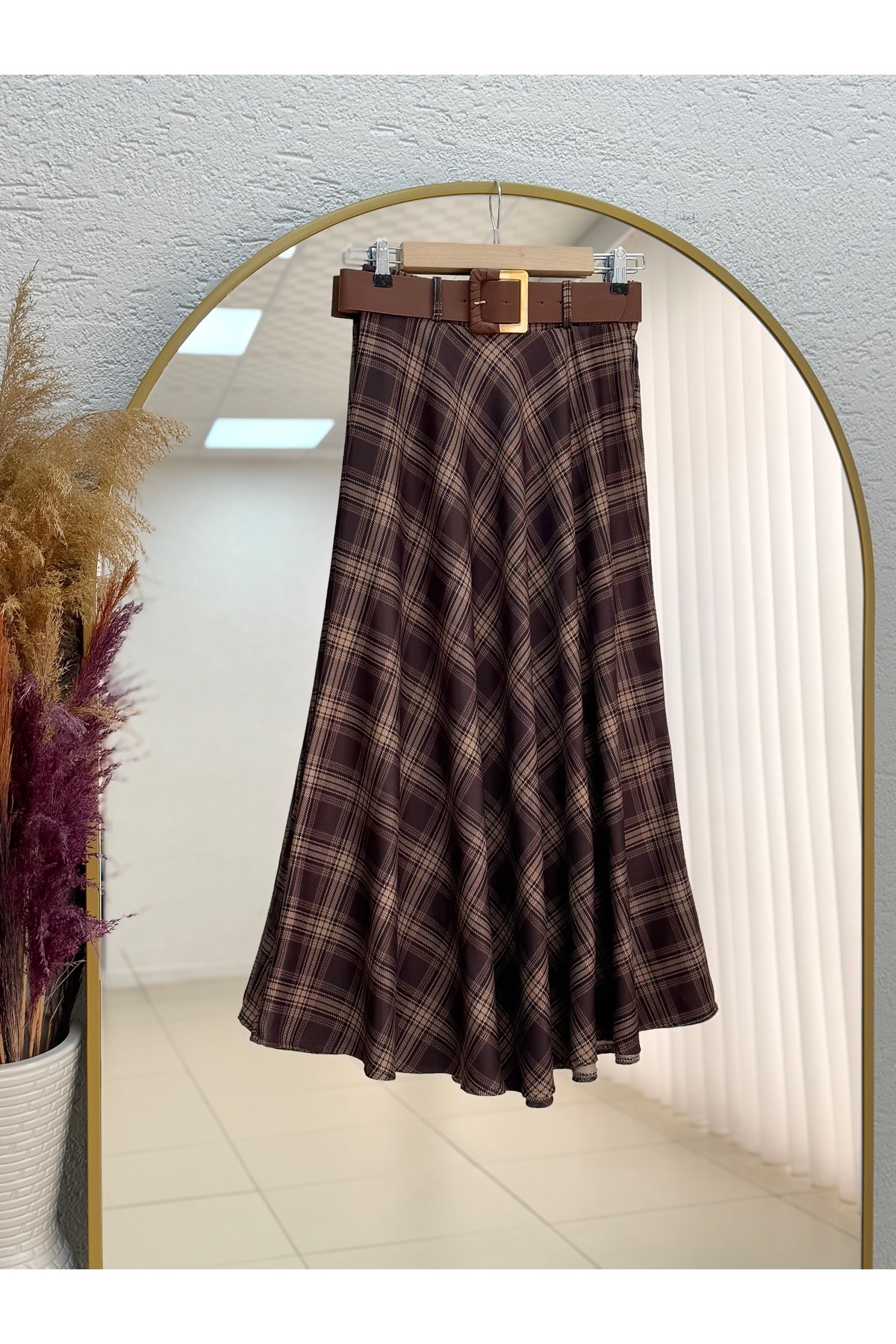 Filisia Desenli Kloş Etek-GS6448 Koyu Kahve