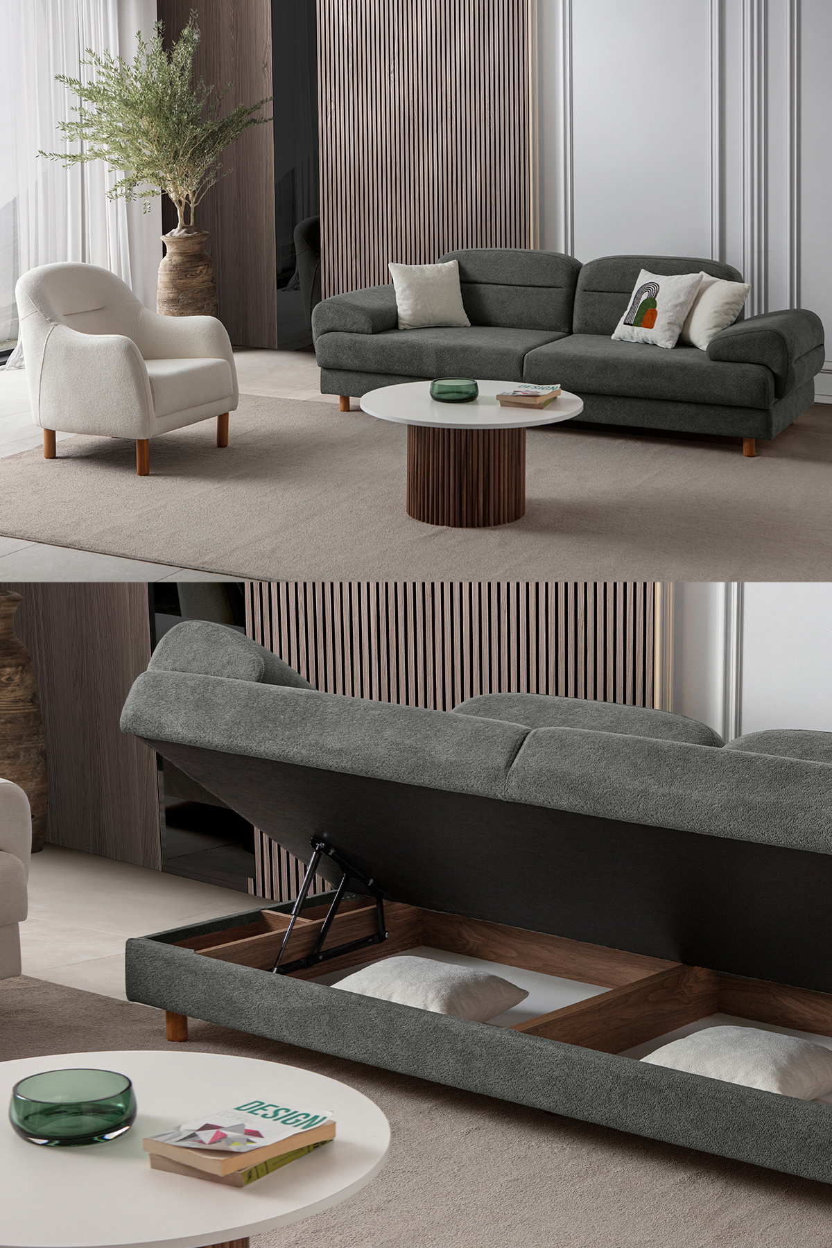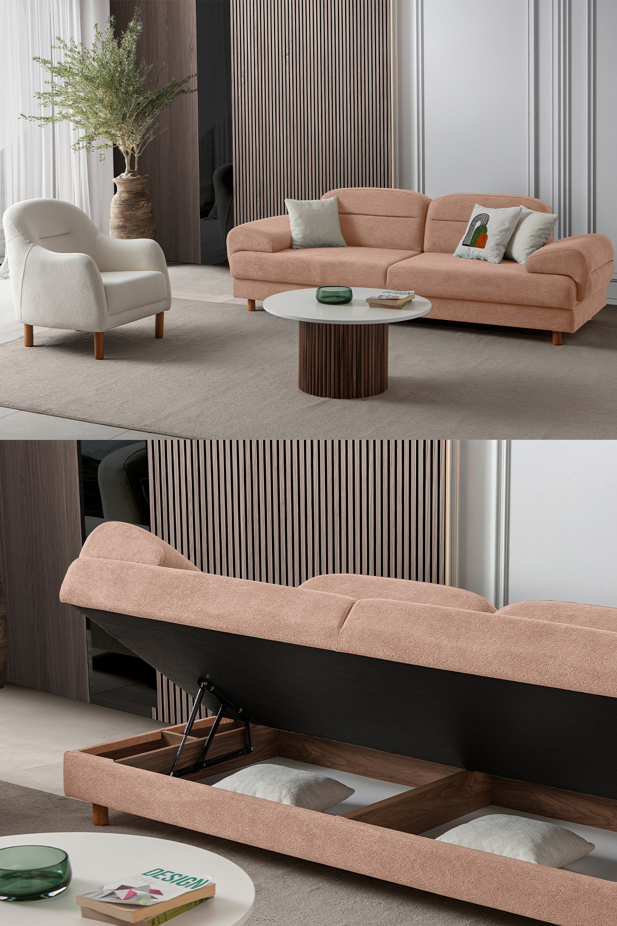 Lizbon Yataklı Sandıklı Koltuk Takımı 3+1Takım İçeriği: 1 Adet Üçlü Koltuk, 1 Adet Berjer Üçlü Koltuk Ölçü Bilgileri: Genişlik: 240 cm Derinlik: 93 cm Yükseklik: 85 cm Kolçak Genişliği: 30 cm Oturum Genişliği: 170 cm Oturum Derinliği: 60 cm Oturum Yüksekliği: 40 cm Sırt Yüksekliği: 45 cm Ayak Yüksekliği: 10 cm Oturum Derinliği (Mekanizma Açık): 90 cm Oturum Genişliği (Mekanizma Açık): 225 cm Sandık Genişliği: 230 cm Sandık Derinliği: 85 cm Sandık Yüksekliği: 15 cmBerjer Ölçü Bilgileri: Genişlik: 75 cm Oturum genişliği: 58 cm Yükseklik: 85 cm Oturum yüksekliği: 43 cm Derinlik: 75 cm Ürün Özellik Bilgileri: Kumaş: Pamuklu polyester türü olan Coco kumaş kullanılmıştır.
