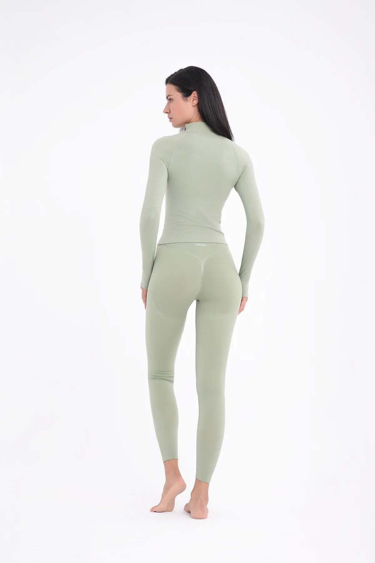 Fermuarlı Uzun Kollu Aktif Spor Üst - Mint Yeşil