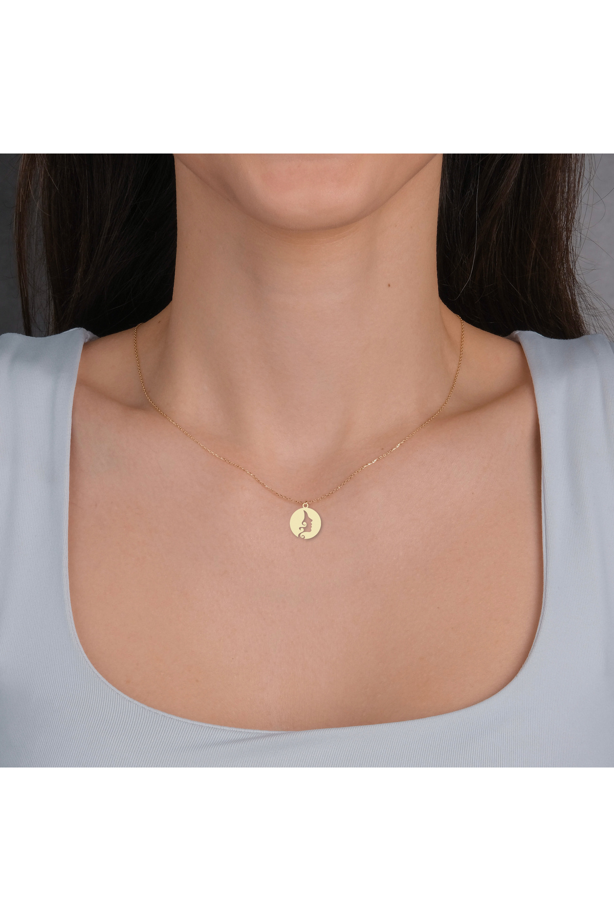14 Ayar Altın Plakalı Yüz Profili Motifli Yıl Dönümü Hediyesine Özel Altın Kolye-844