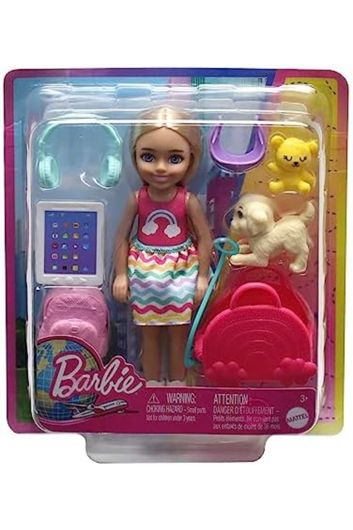 Chelsea bebekle hayal gücünüzü dünya turuna çıkarın Chelsea seyahat bebeği, yeni hikayelere ilham olacak 6 ek aksesuarı ve yavru köpeğiyle yeni yerleri keşfetmeye hazır Yavru köpeğini taşıma çantasına koyun, gerçekten açılıp kapanabilen sırt çantasına eşyalarını yerleştirin ve yola çıkın Gökkuşağından esinlenilerek tasarlanmış kıyafeti, kulaklığı, tableti ve oyuncak ayısıyla Chelsea bebek harika bir uçuş yaşayacak.