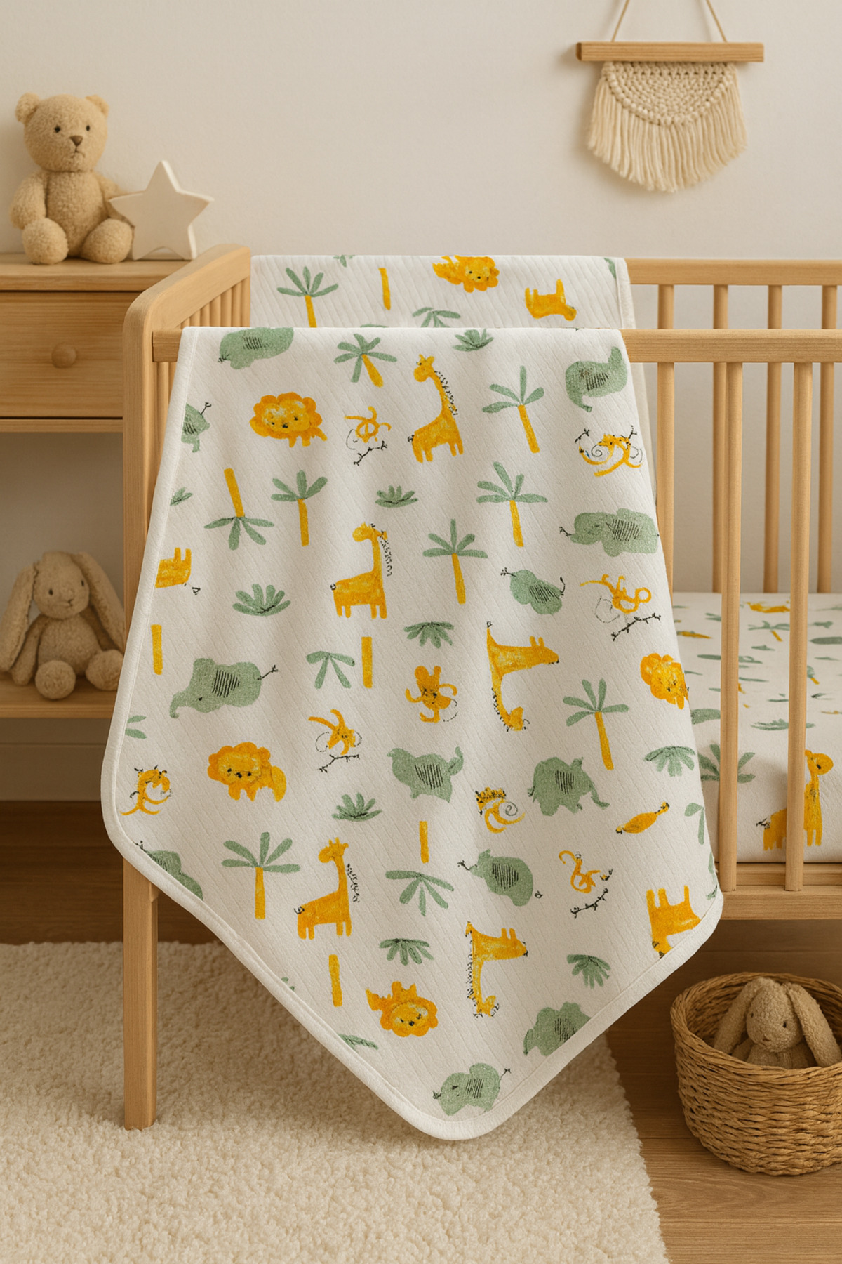 - Hayvan desenleriyle süslenmiş tasarımı, bebeğinizin odasına neşeli ve eğlenceli bir hava katar.