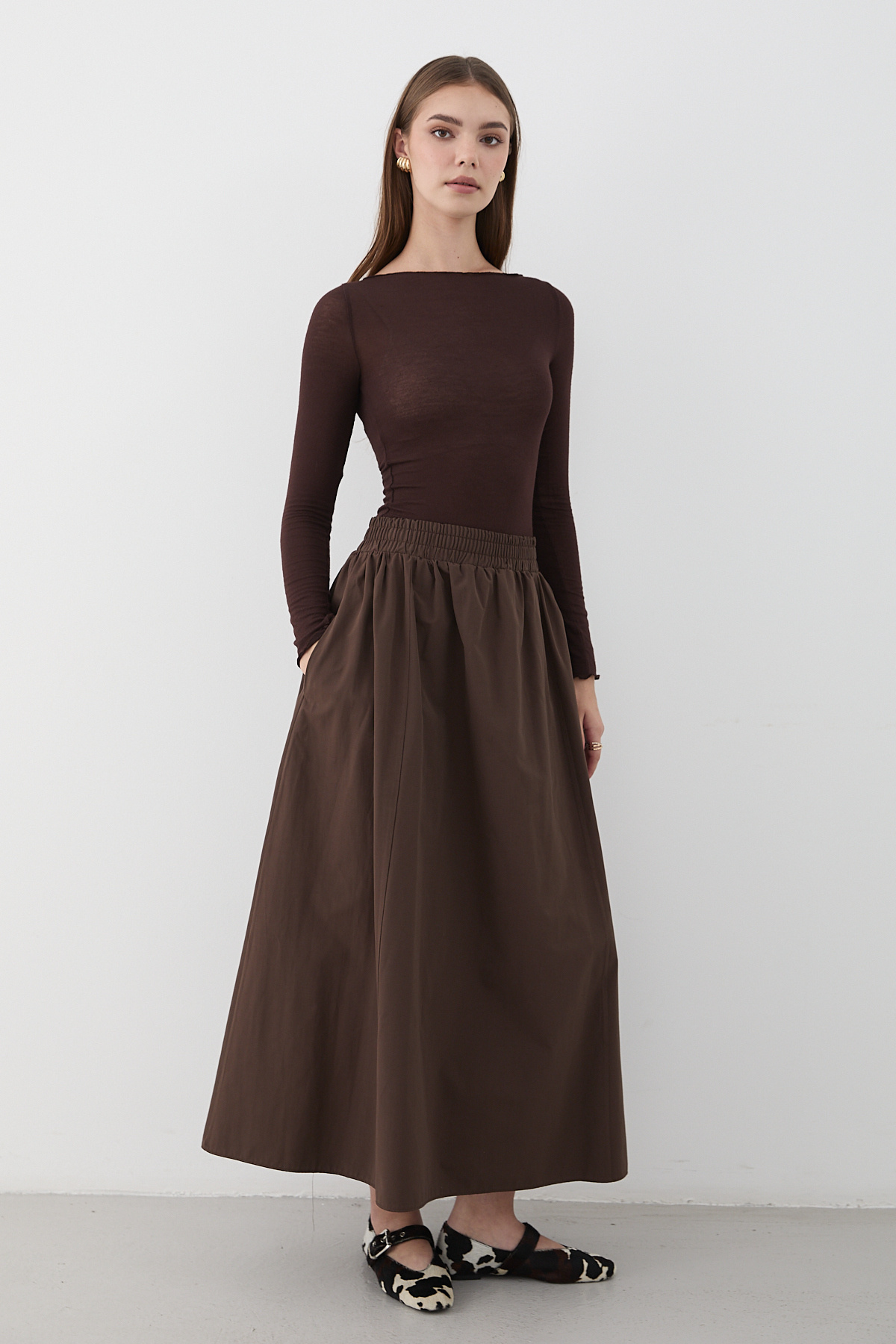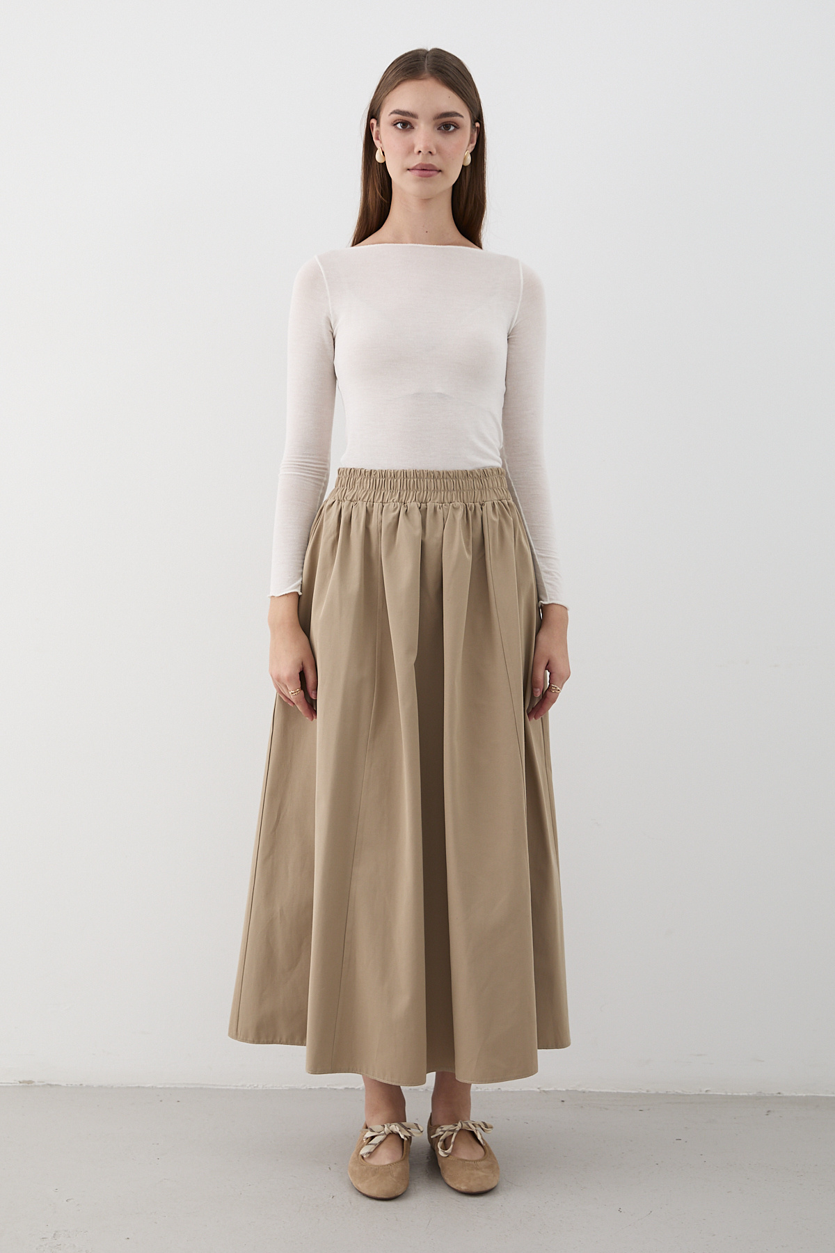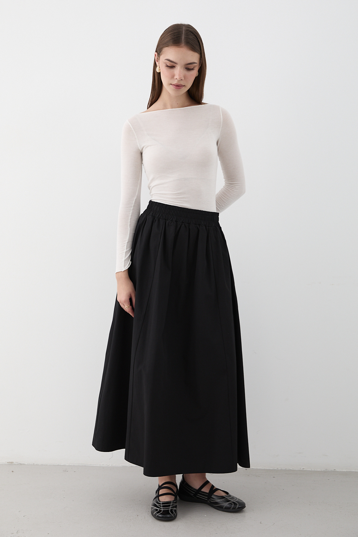 - Twill dokuma tipi, etek formunu koruyarak şık bir görünüm sağlar.