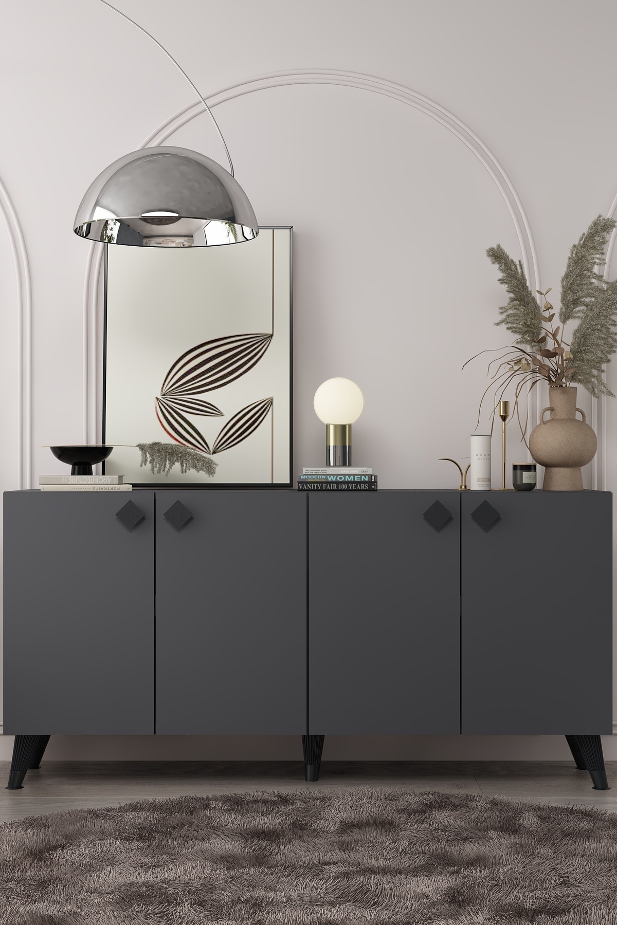 - Modern tasarımıyla mekanınıza şıklık katan NEFES KARE01-KNS150-8200AD konsol TV ünitesi, 75 cm yüksekliği ve 35 cm derinliği ile ideal boyutlarda tasarlanmıştır.