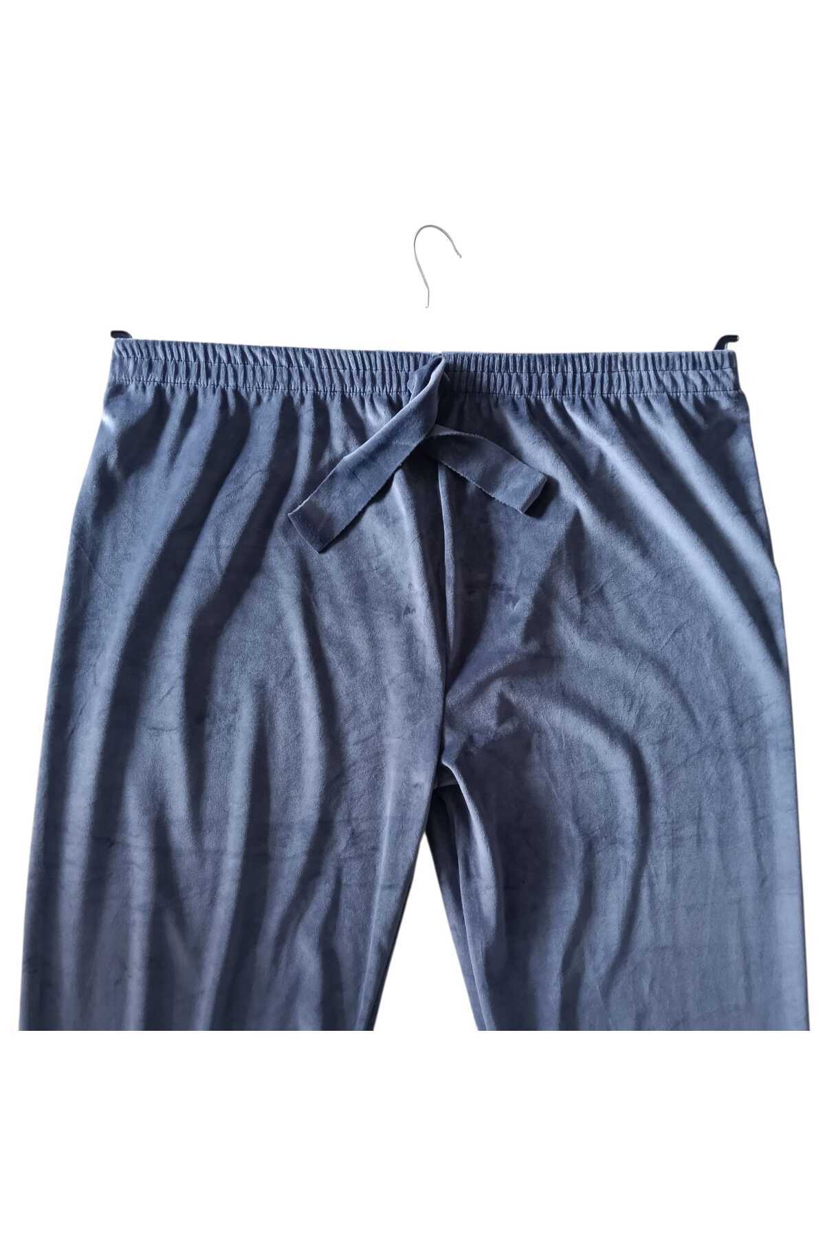 KADIN FRANSIZ KADİFE BATTAL BEDEN BEL LASTİKLİ CEPSİZ EŞOFMAN ALTI PANTOLON PİJAMA ALTI TAYT