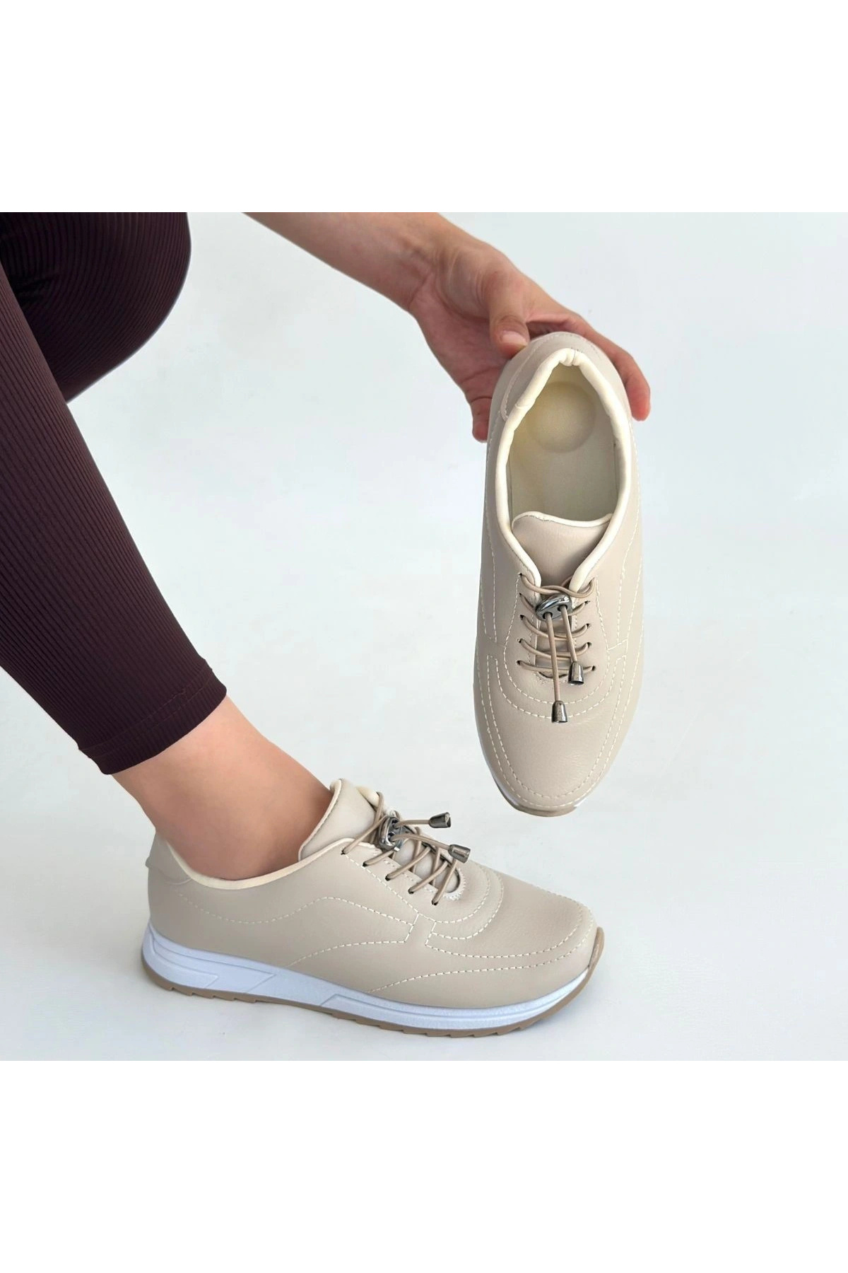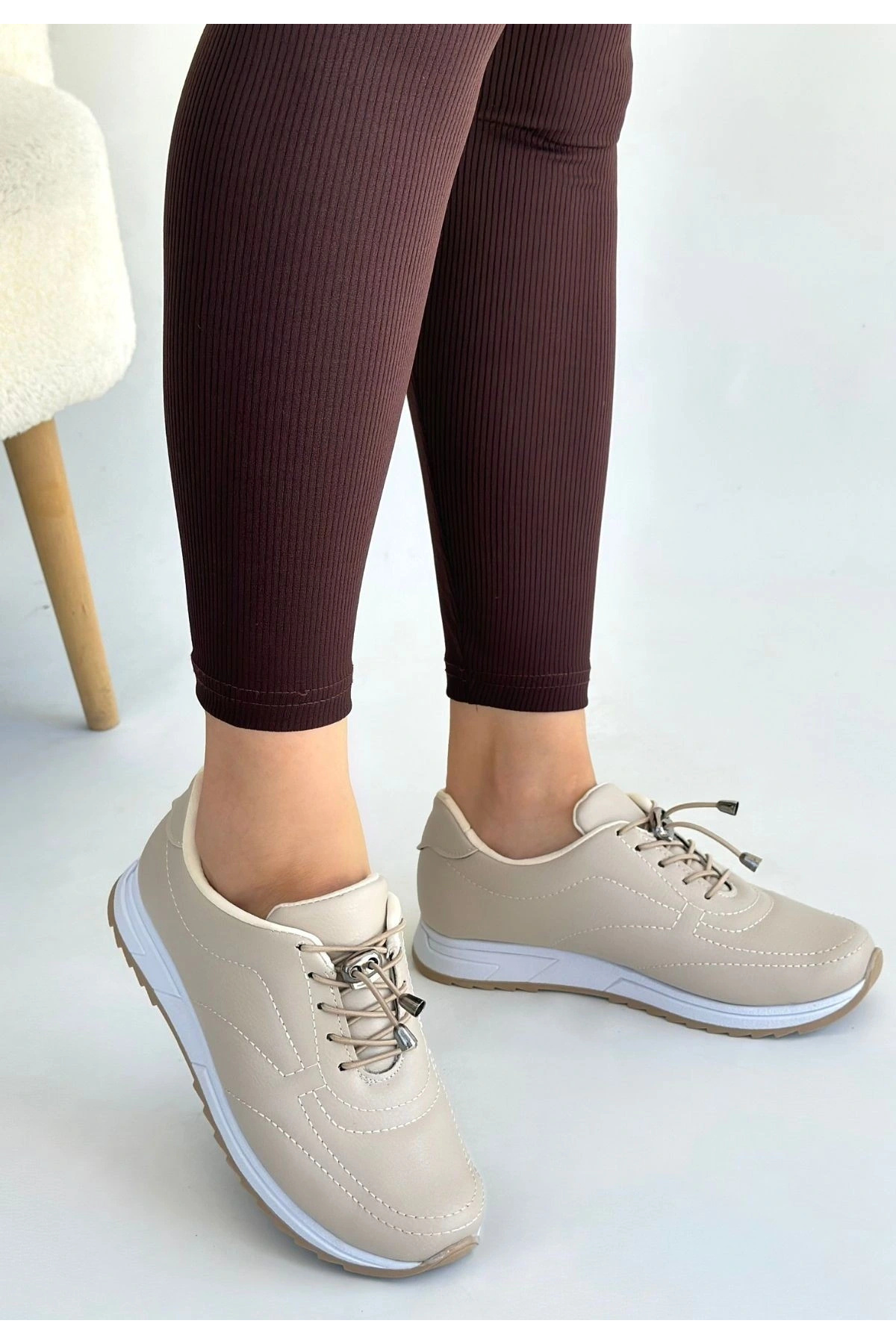 Finna Bej Cilt Bağcıklı Spor Ayakkabı
