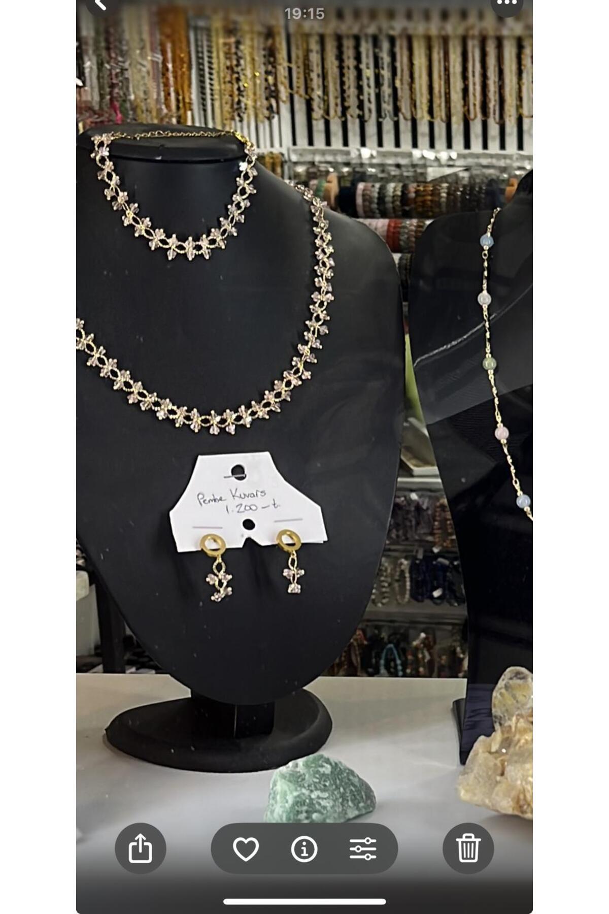 - Göz alıcı pembe kuvars taş detaylarıyla dikkat çeker.