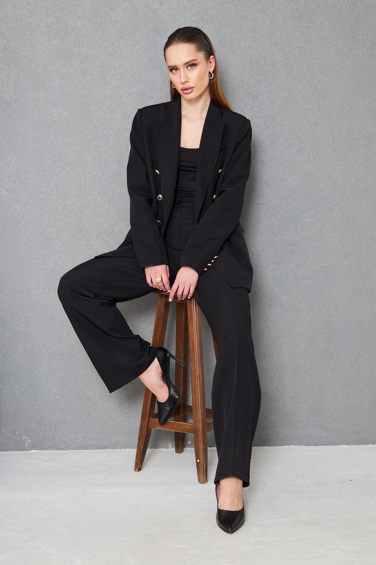 Gold 6 Düğmeli Kruvaze Takım Siyah